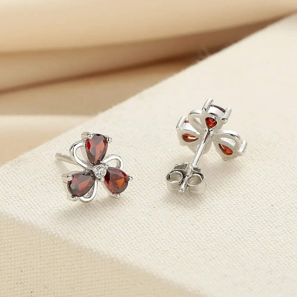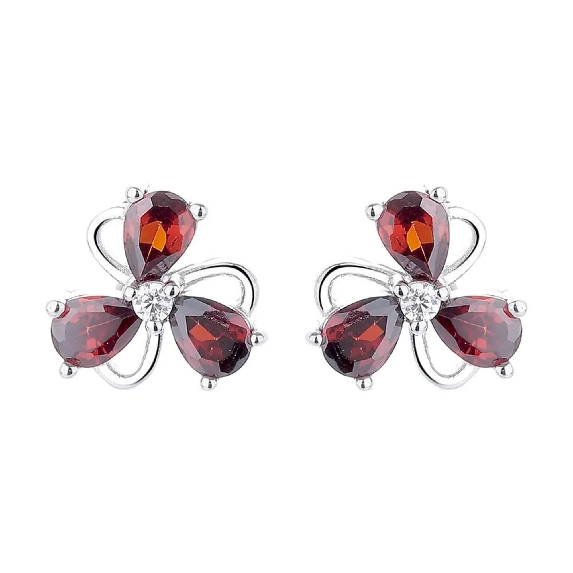 Charming silver earrings that capture the essence of floral beauty with their petal-shaped red cubic zirconia gemstones. The open silver curves between the petals give the design a light and delicate feel. A bold yet feminine choice that brings a touch of color to your everyday style.