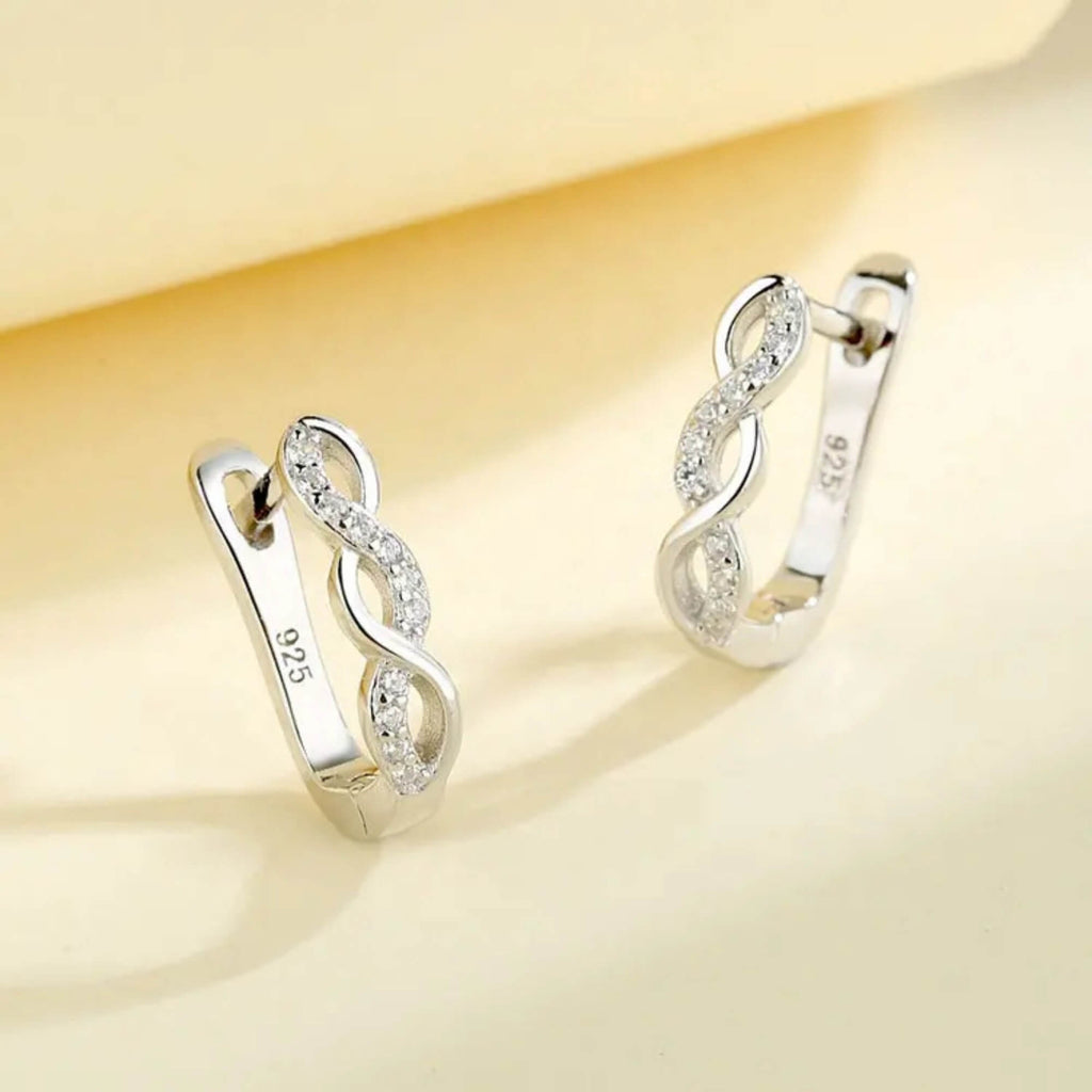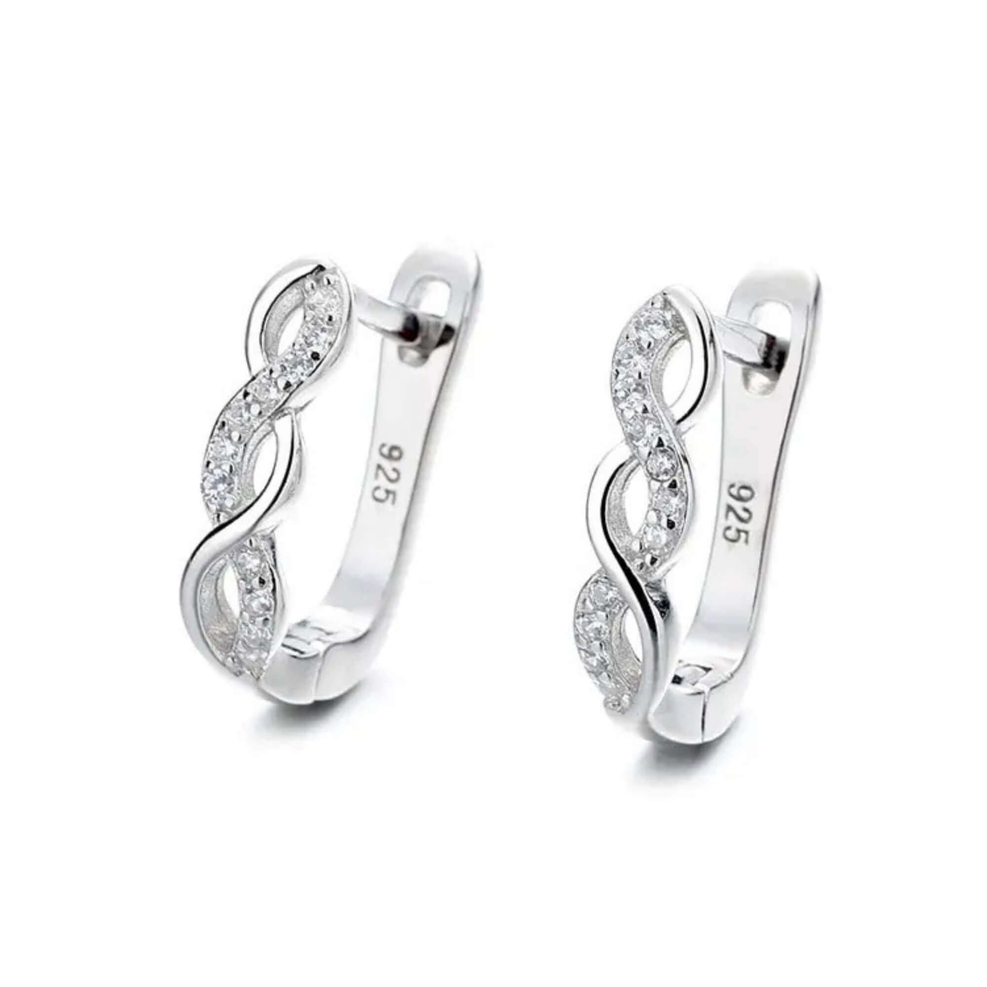 Silver earrings featuring a softly twisted design set with delicate cubic zirconia stones. The gentle curves and subtle sparkle give them a light, refined presence that works beautifully for both everyday wear and more dressed-up moments.