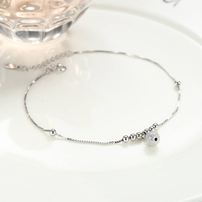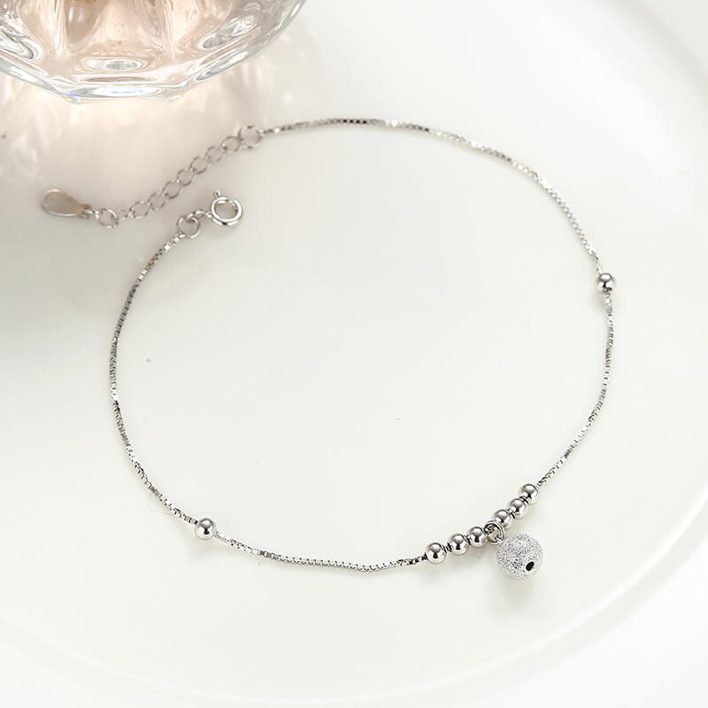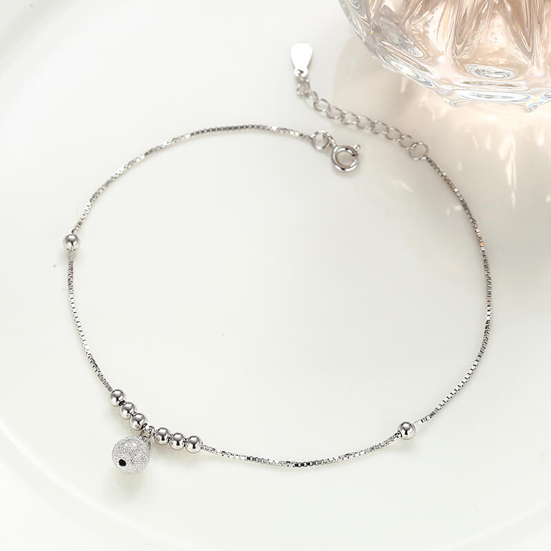 Step out with confidence in this sleek sterling silver anklet. Its Venetian-style chain is paired with an oval accent and polished beads, adding just the right detail to highlight your unique style with subtle sophistication.