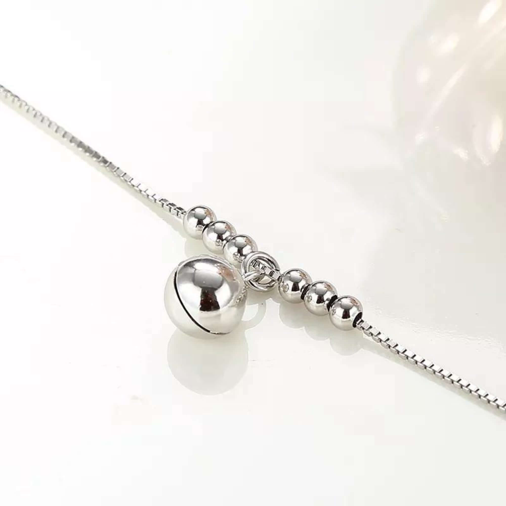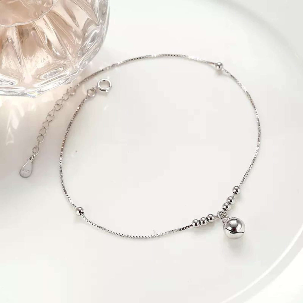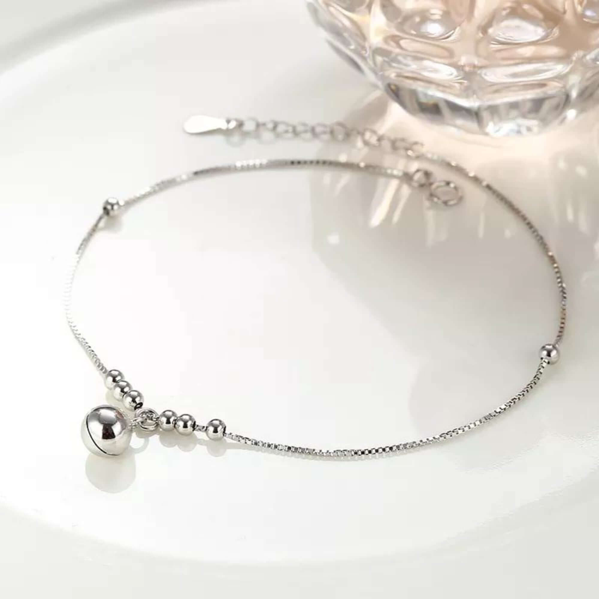 This sterling silver anklet brings together simplicity and elegance in perfect harmony. Eight delicate beads line the chain, leading to a refined centerpiece that adds subtle interest. Whether worn with casual looks or more polished outfits, it offers timeless style that feels effortlessly graceful.