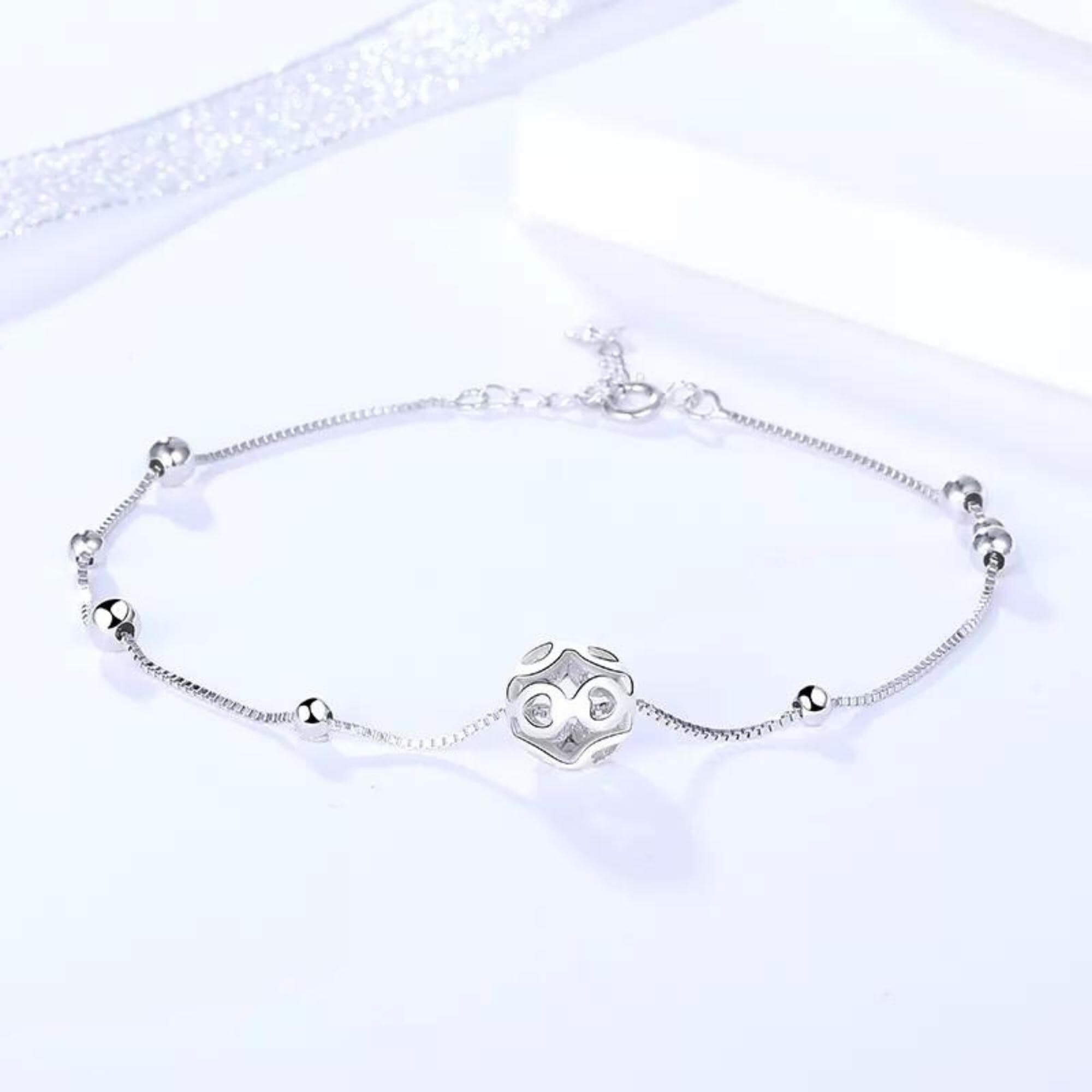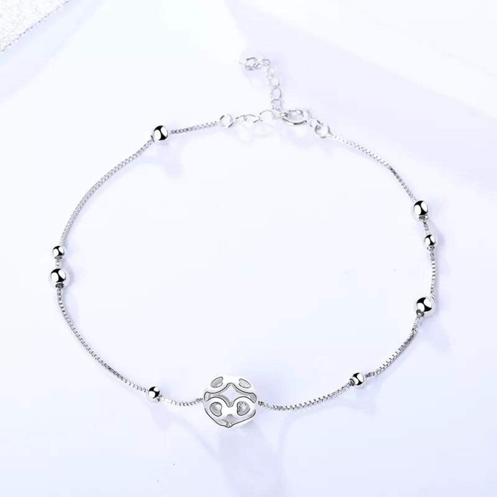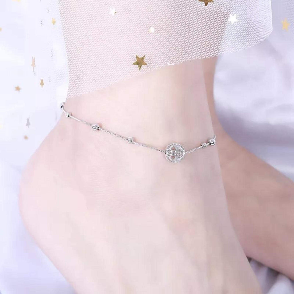 This silver anklet features a round charm with tiny heart-shaped cutouts, framed by eight evenly spaced beads. The design speaks to balance, love, and graceful style – a meaningful piece that feels thoughtful and refined without trying too hard.
