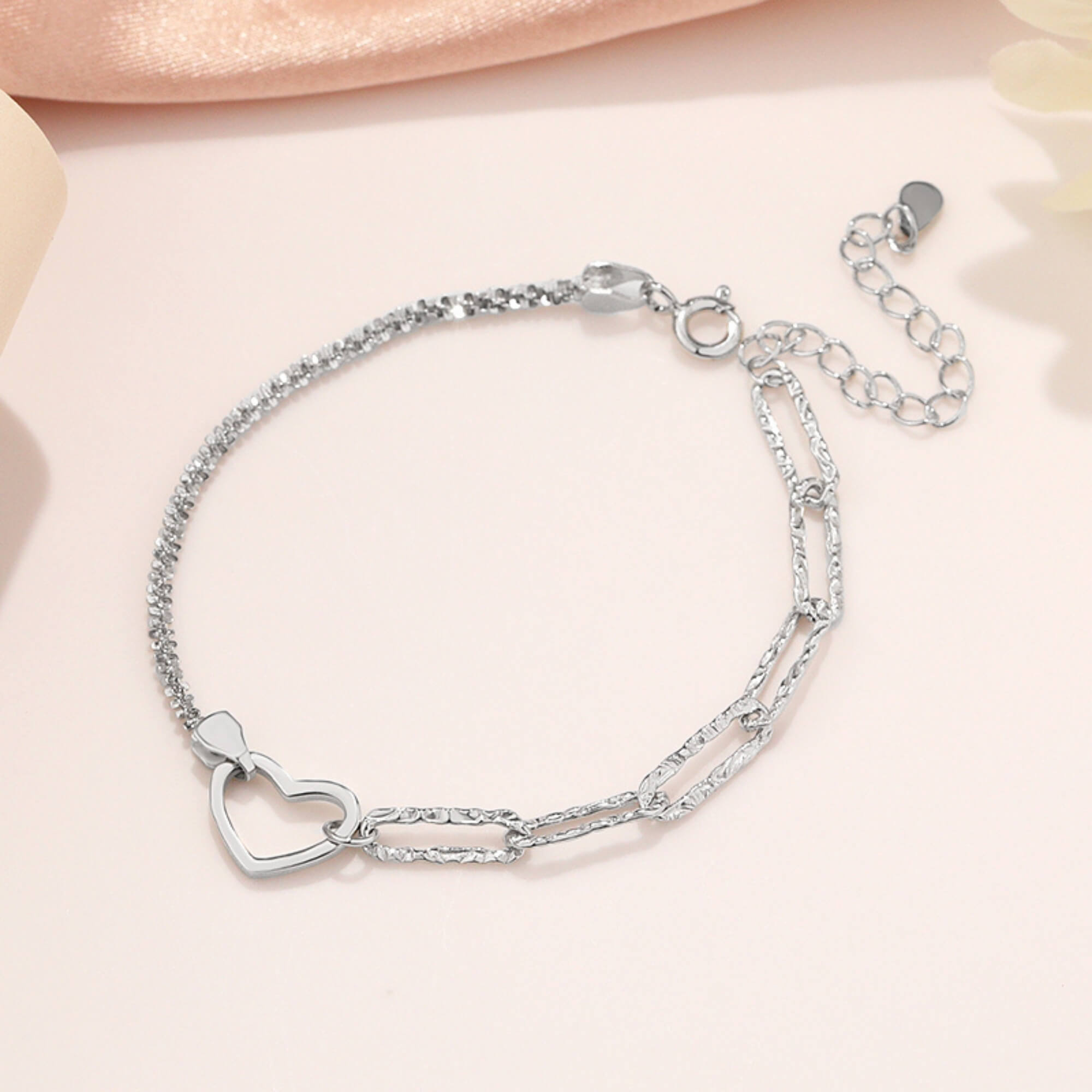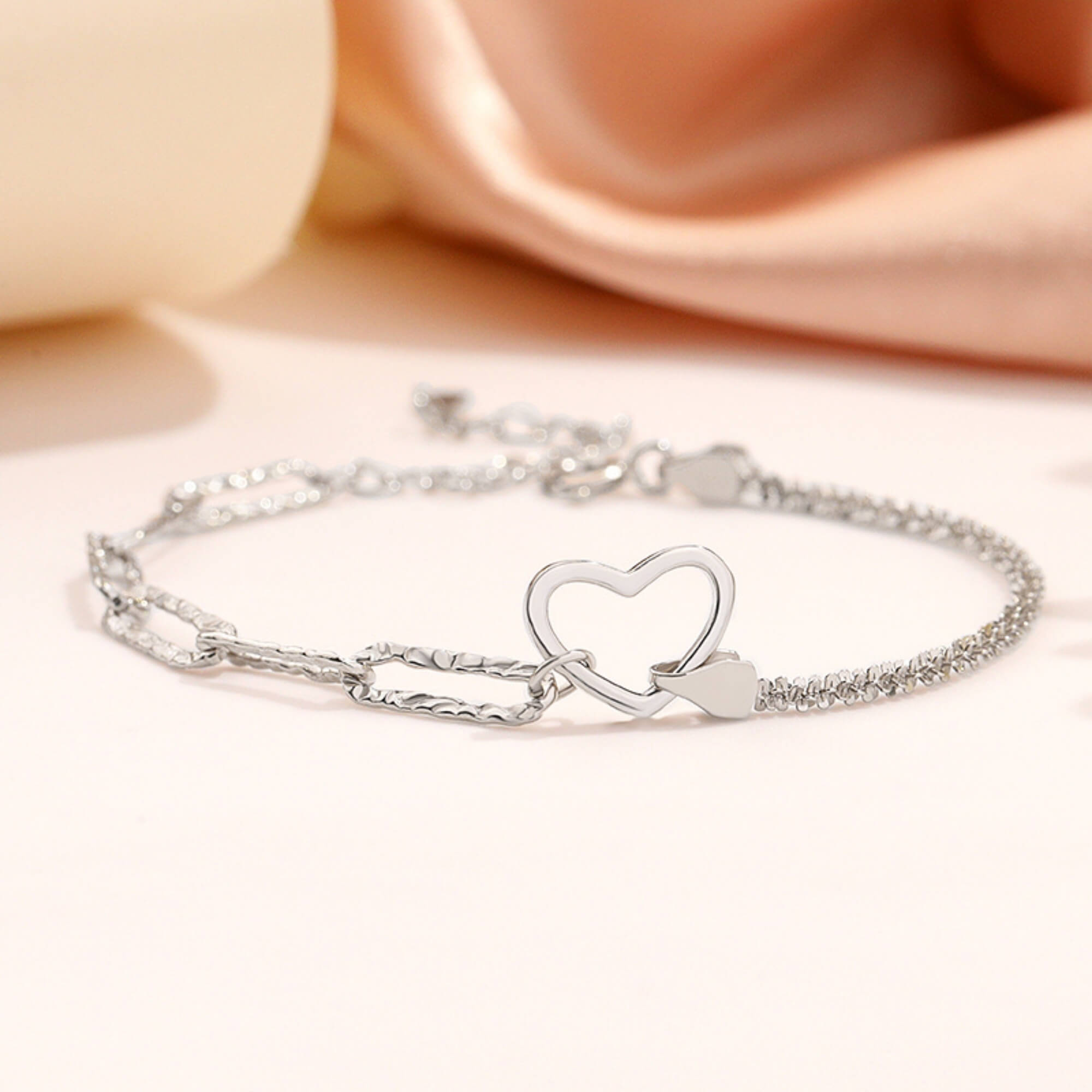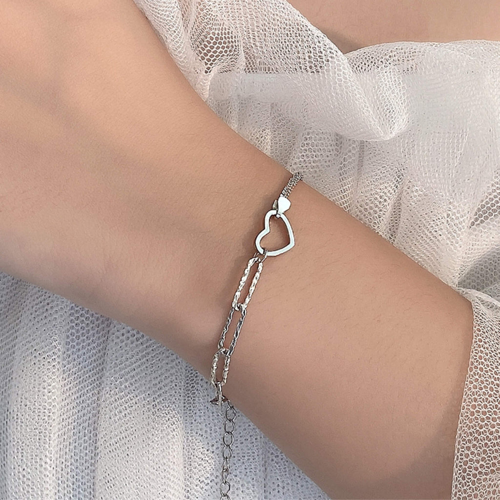 Sterling silver bracelet featuring a double Venetian chain and a heart centerpiece. A thoughtful design that feels personal and makes a beautiful gift.