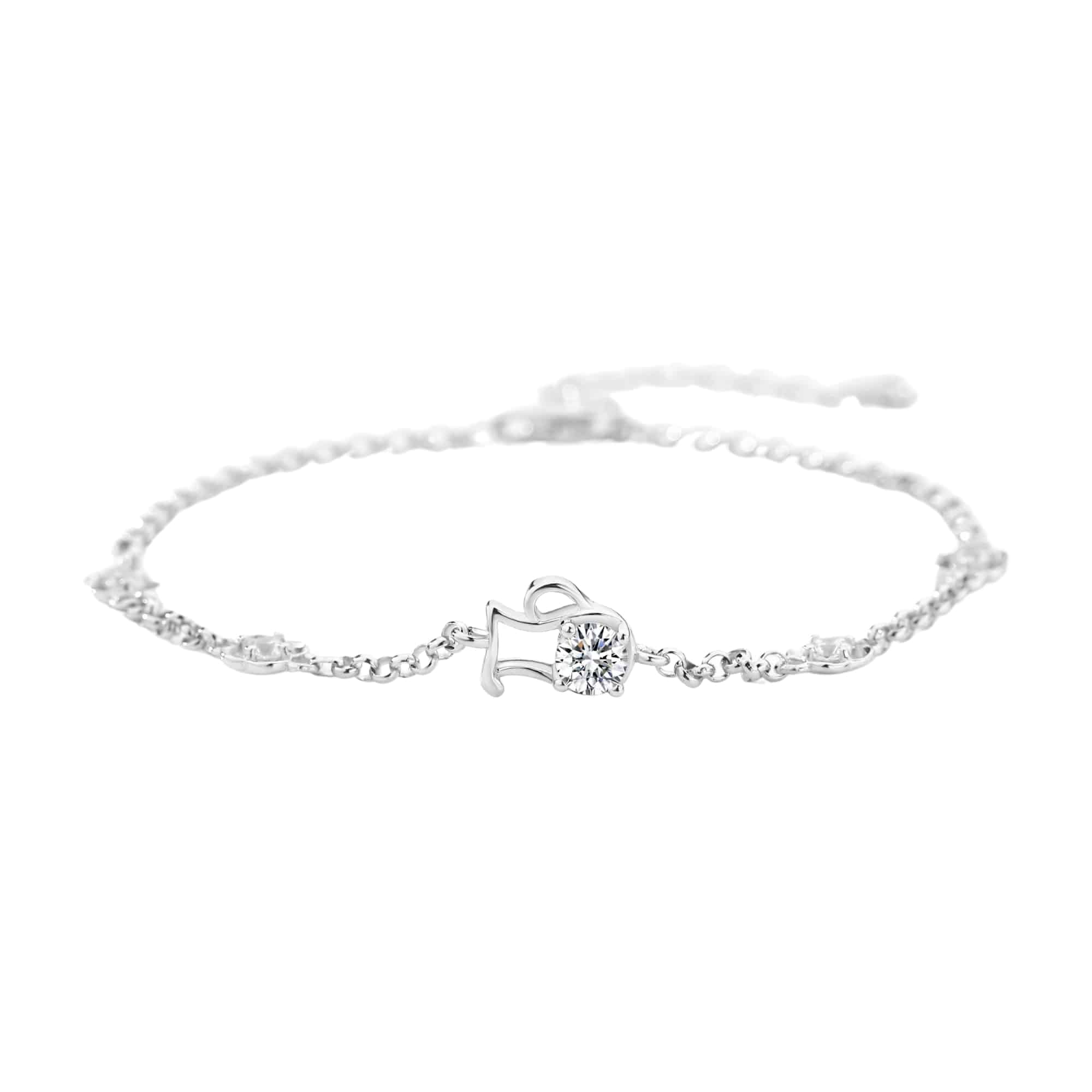 Sterling silver bracelet that takes its inspiration from Aquarius, a zodiac sign known for loyalty, emotional clarity, and intuition. The flowing lines in the design reflect movement and depth, symbolizing the thoughtful and connected nature often linked to this sign. A meaningful piece for someone guided by trust and inner understanding.