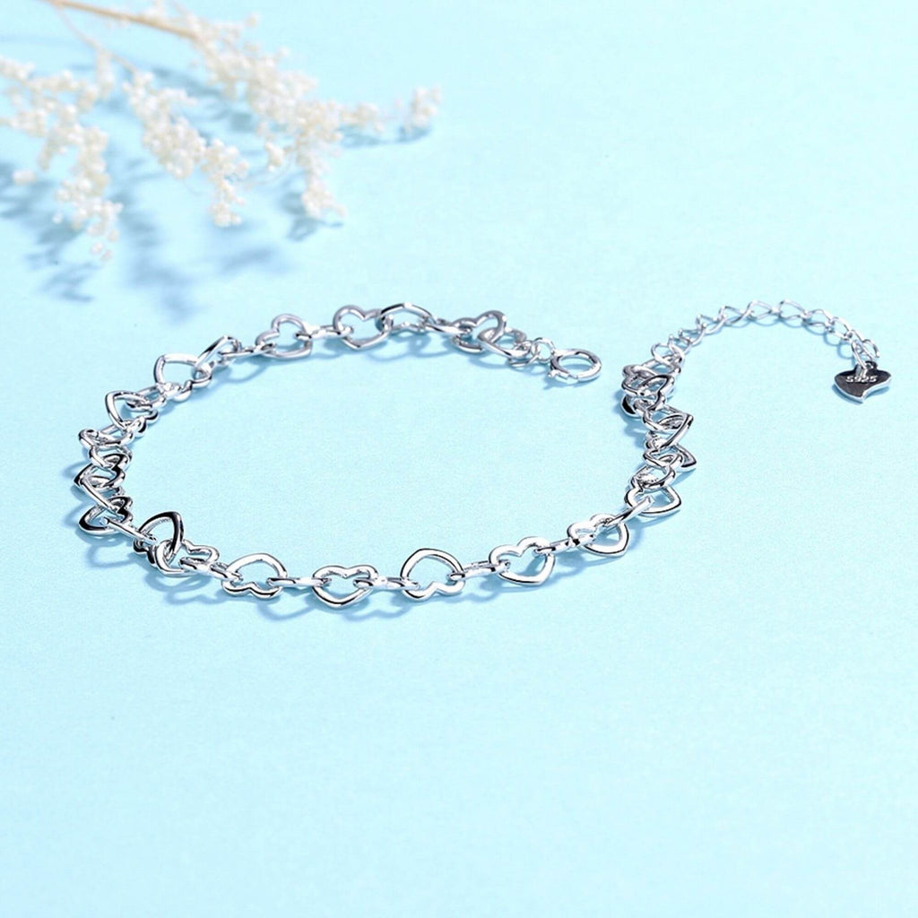 Sterling silver bracelet made of small, connected hearts. With its soft shape and light feel, it is an easy piece to reach for every day.