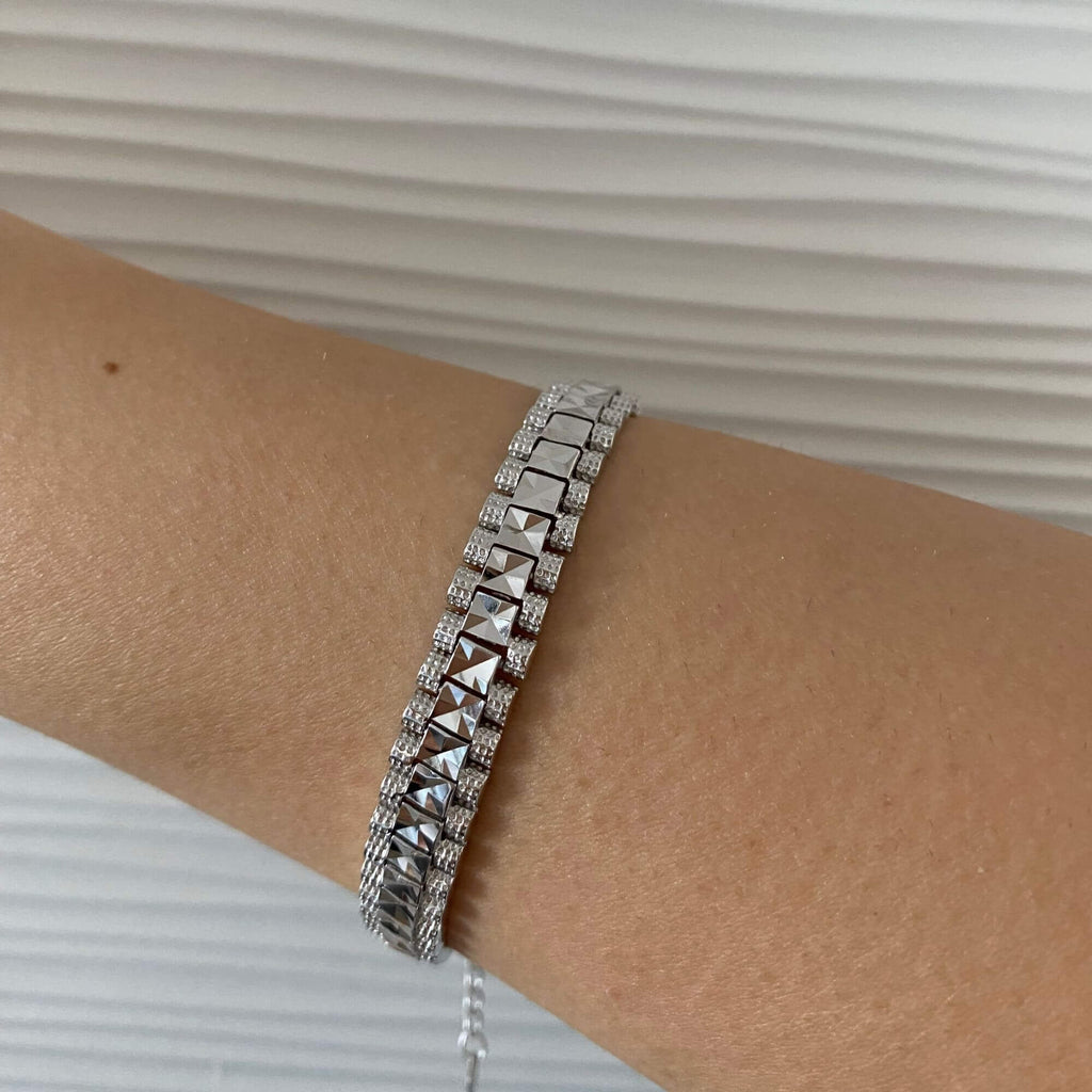 Sterling silver bracelet that features a bold braid texture with a strong, structured feel. The detailed surface adds edge while staying comfortable on the wrist.