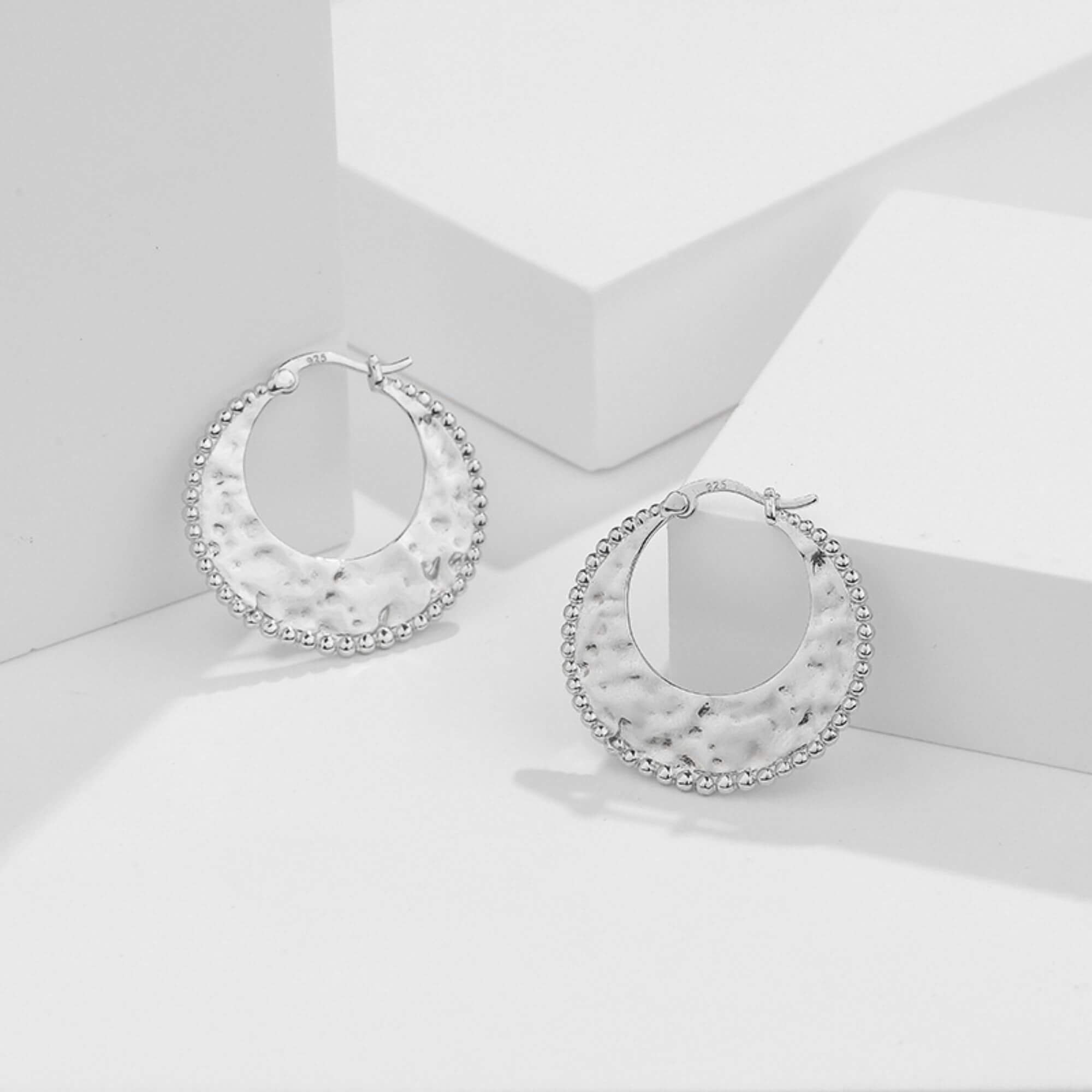 These silver earrings pair a minimalist silhouette with relaxed bohemian charm. Their easygoing shape suits everyday wear, especially if you like your jewelry to feel expressive without being loud.