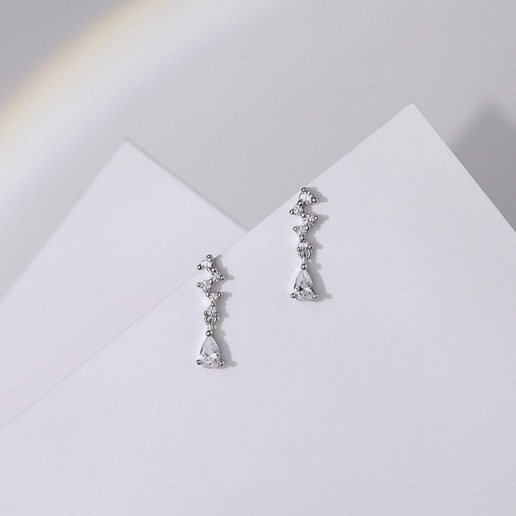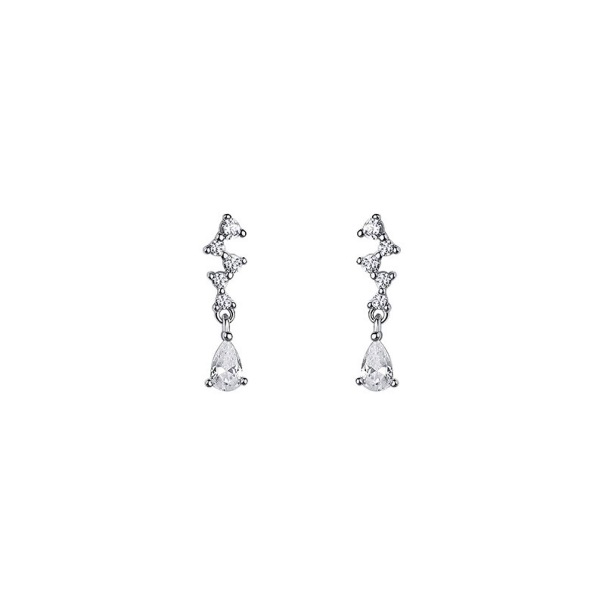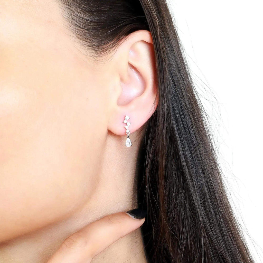 A lightweight silver pair that hangs just below the ear, catching the light with every step. Their clean shape and easy feel make them a natural choice for everyday wear.