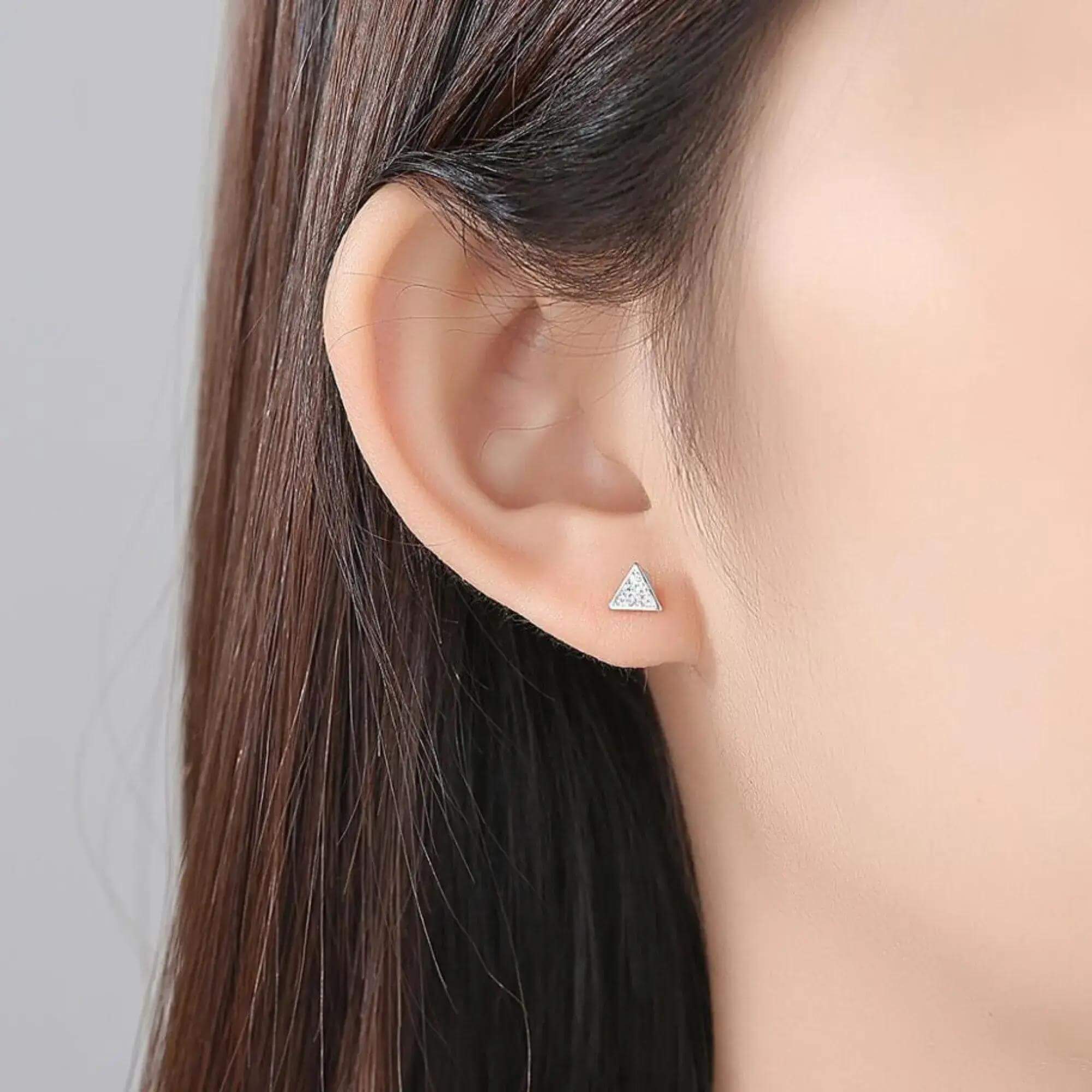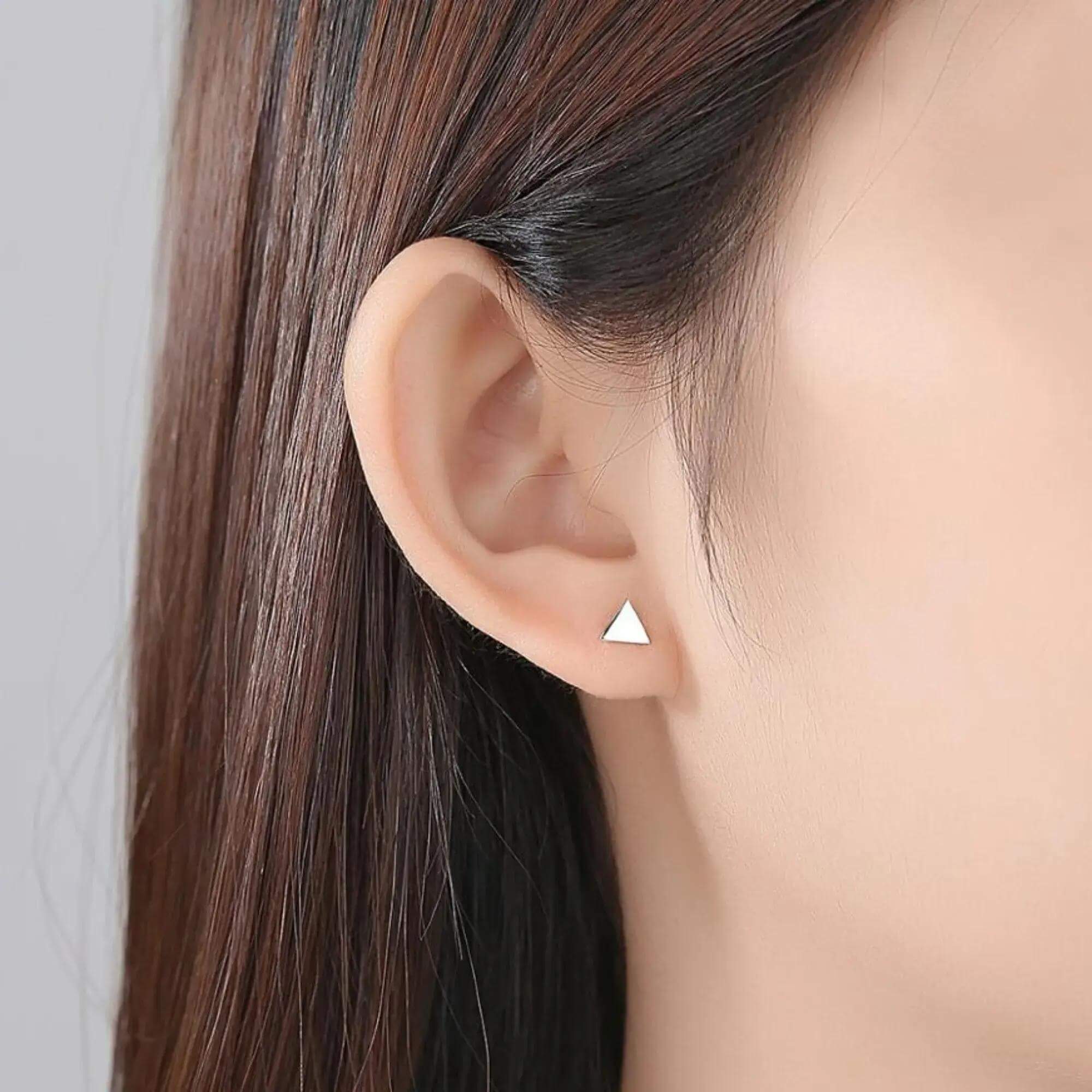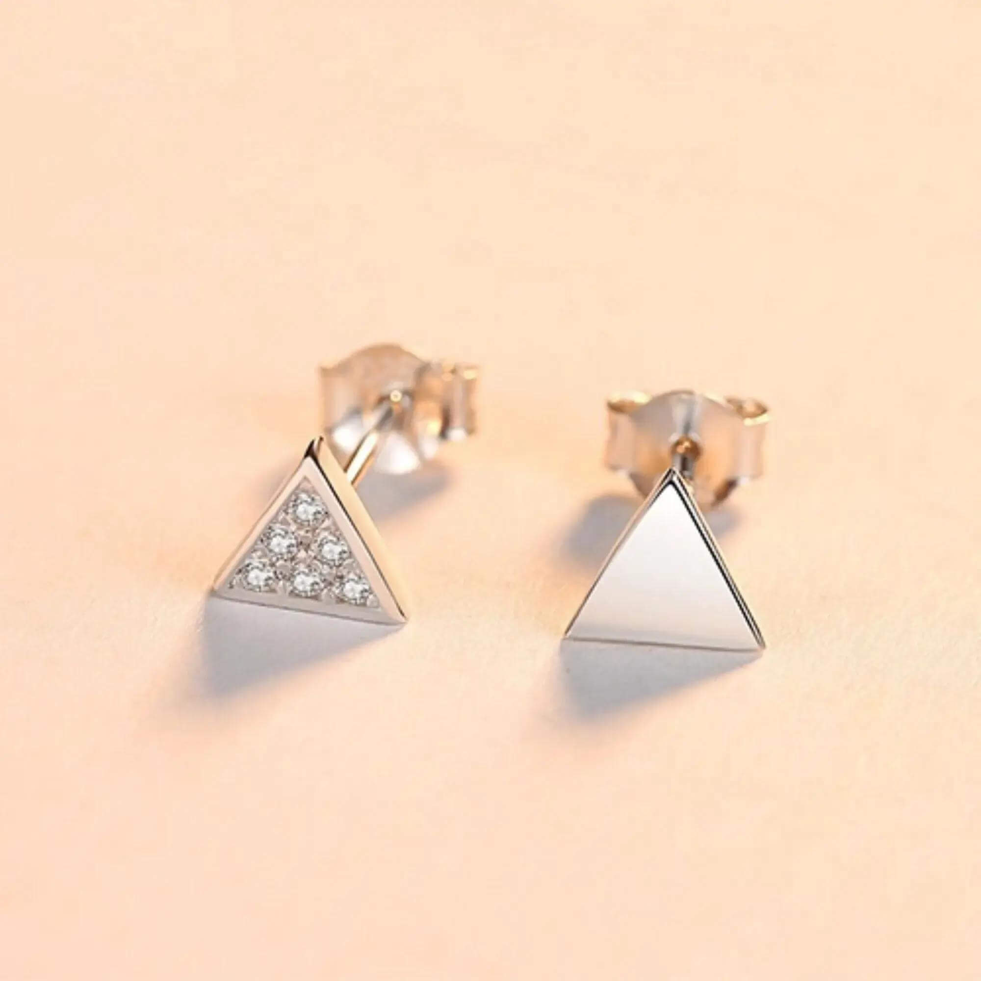 A pair of asymmetrical triangular earrings, perfect for effortless mixing and stacking. Their simplistic design and modern shape make them a smart option for anyone who enjoys a touch of geometry in their styling.