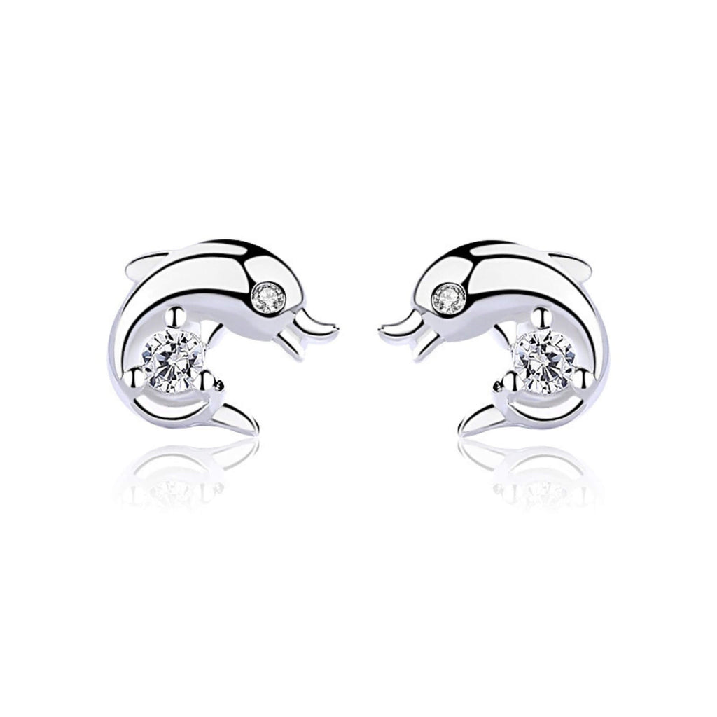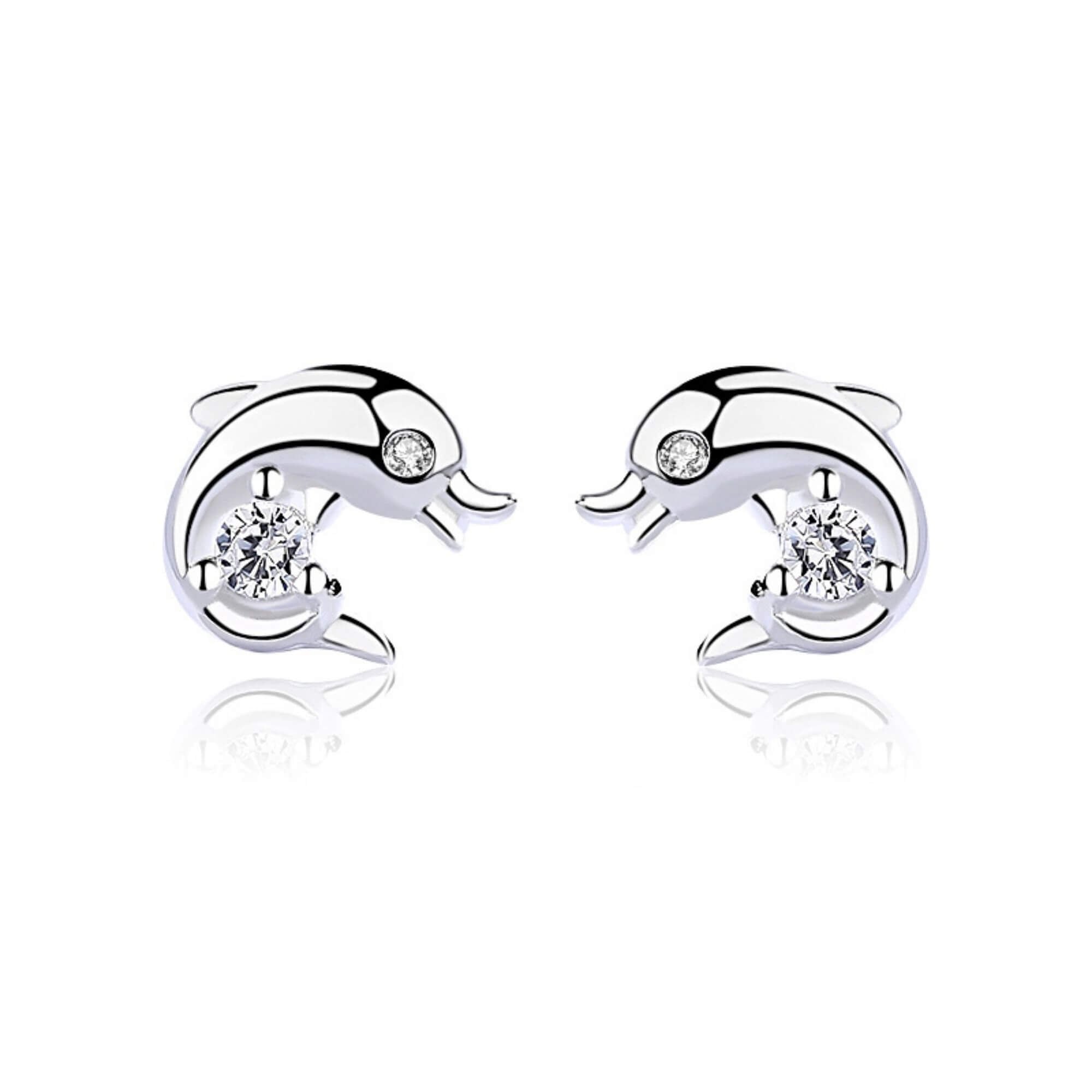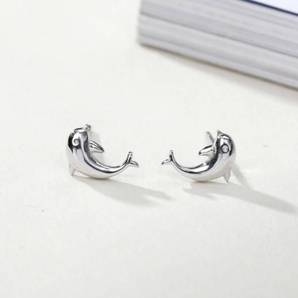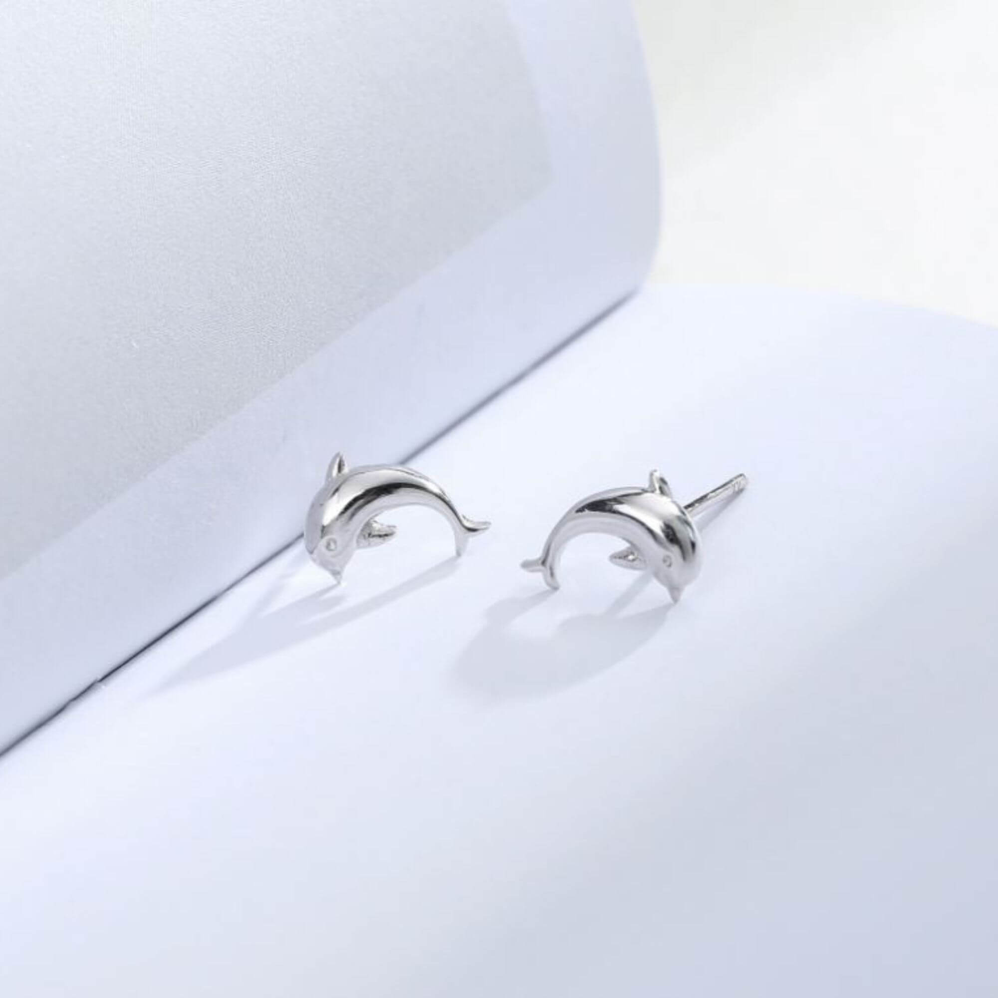 Silver earrings in the shape of a dolphin, available in two styles – one with a smooth finish, the other with added cubic zirconia for a gentle shimmer. A playful, lighthearted design that makes a sweet gift or a favorite pick for ocean lovers.