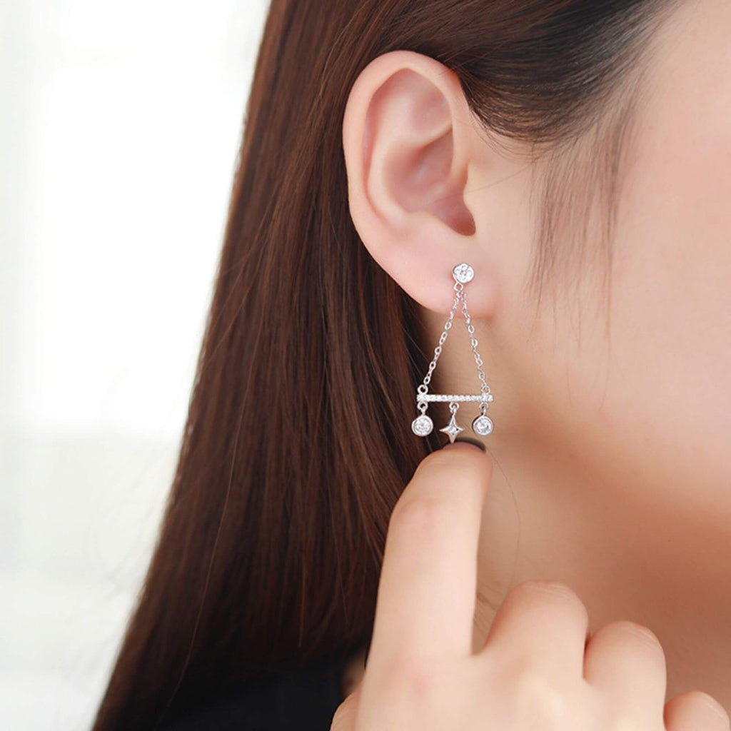This silver design, called “Dynamics,” explores shape and proportion through a striking triangular form. Carefully balanced and thoughtfully made, the earrings have a bold yet wearable presence that brings energy to any look.
