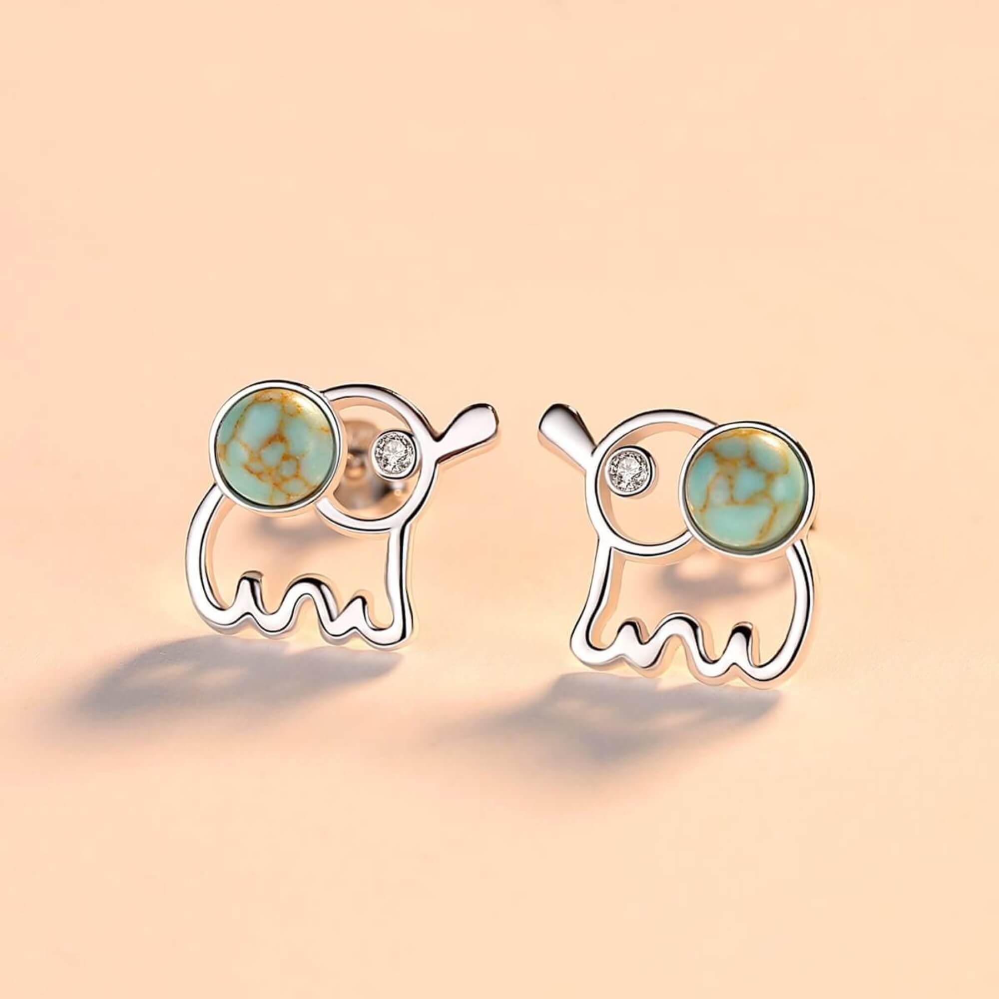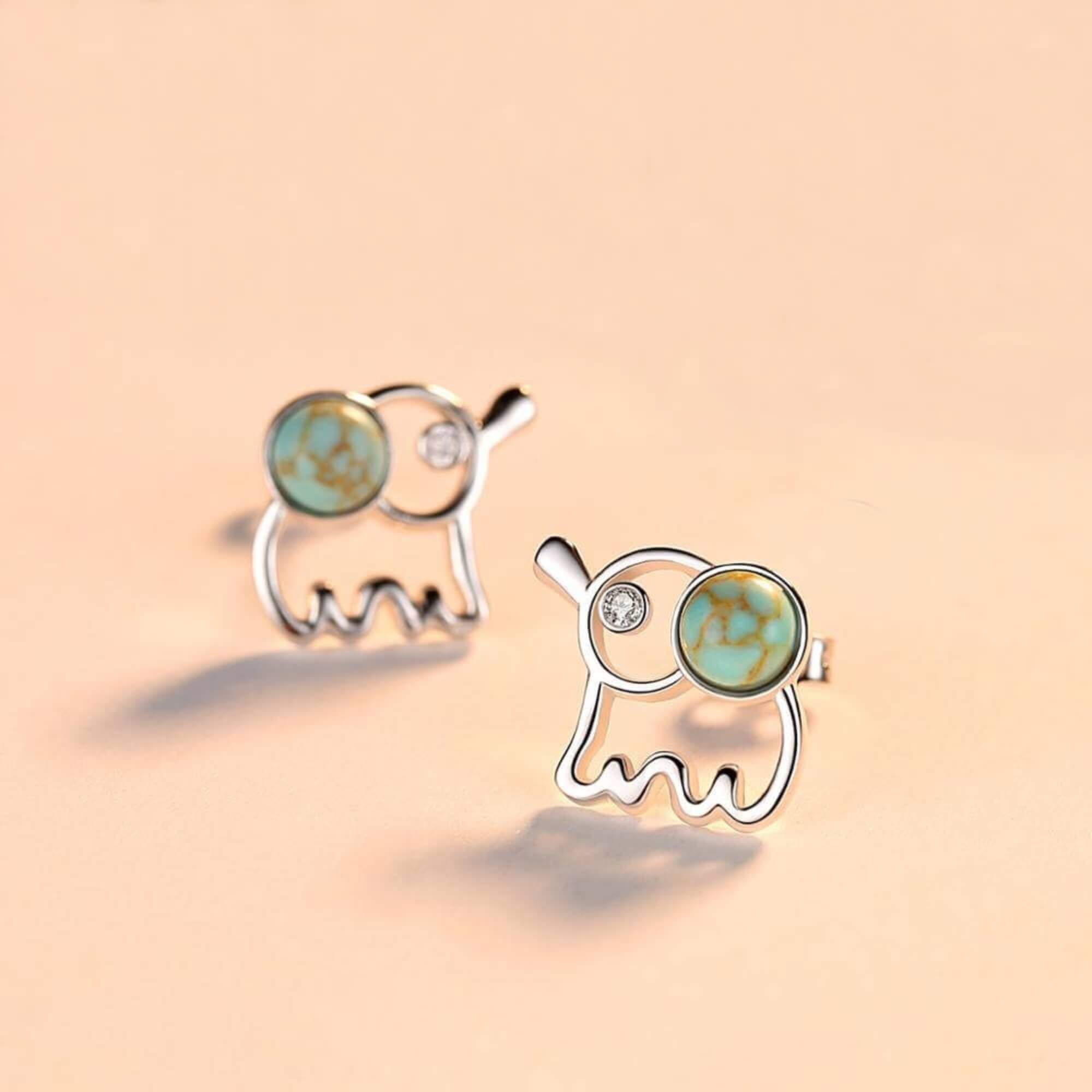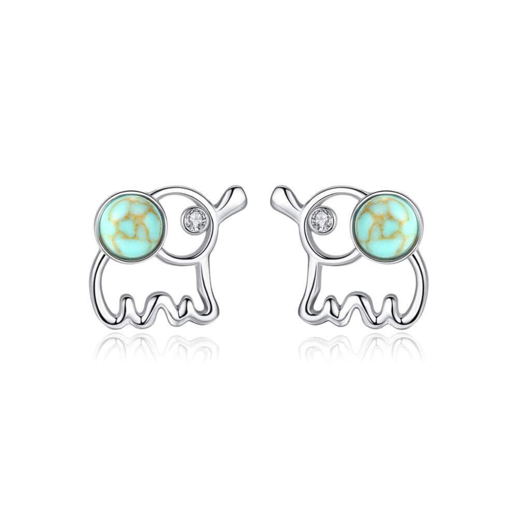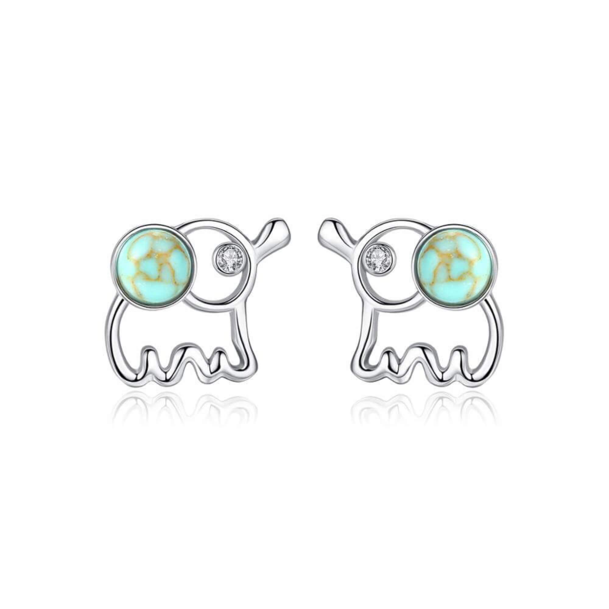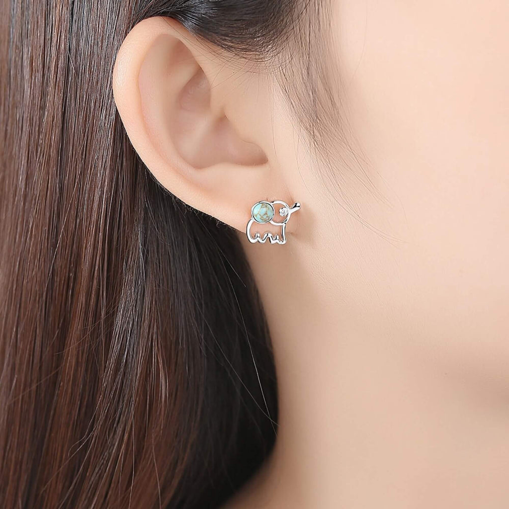A playful interpretation of the beloved elephant symbol, these silver earrings feature a small turquoise stone as a colorful focal point. A charming pair for those drawn to gentle strength and meaningful design.