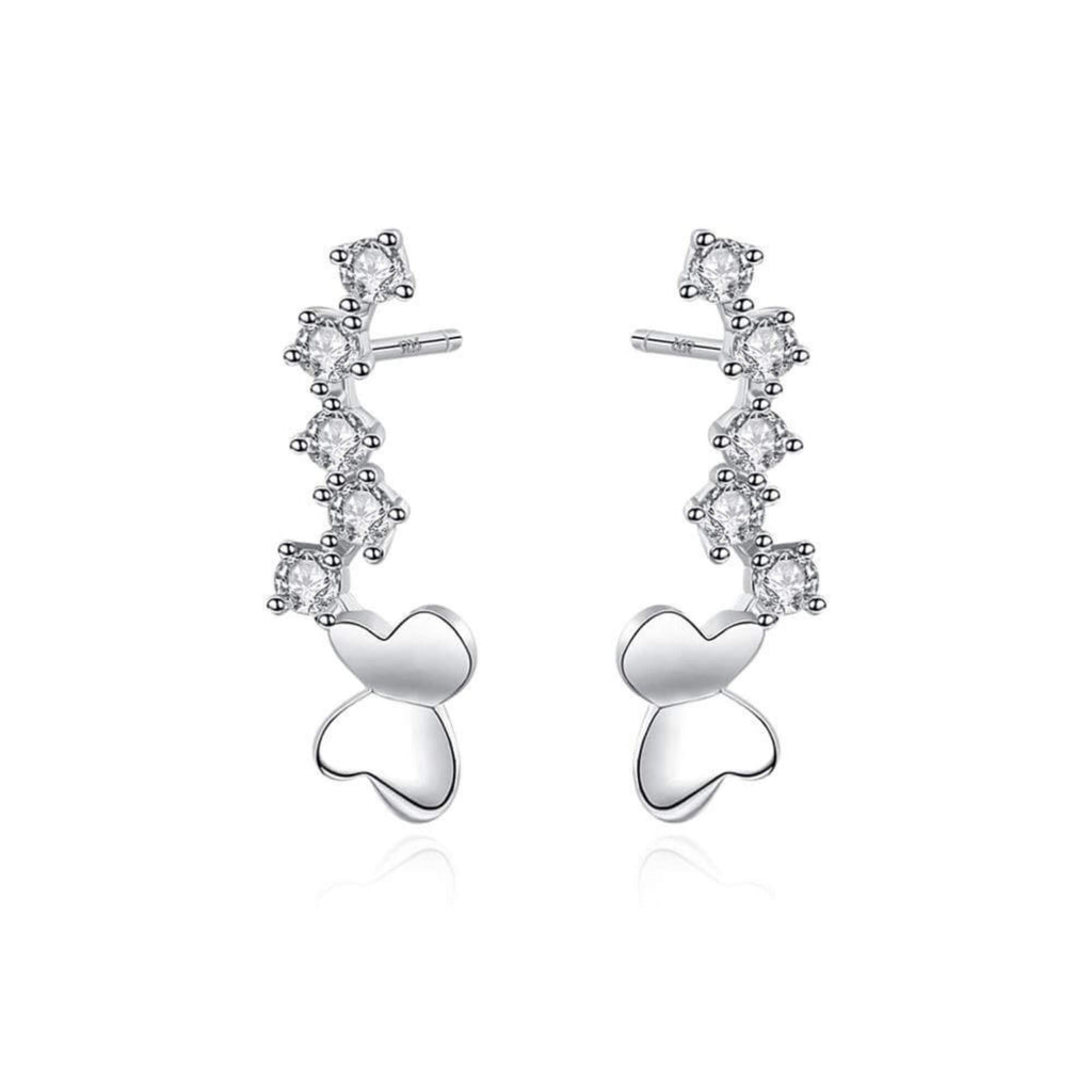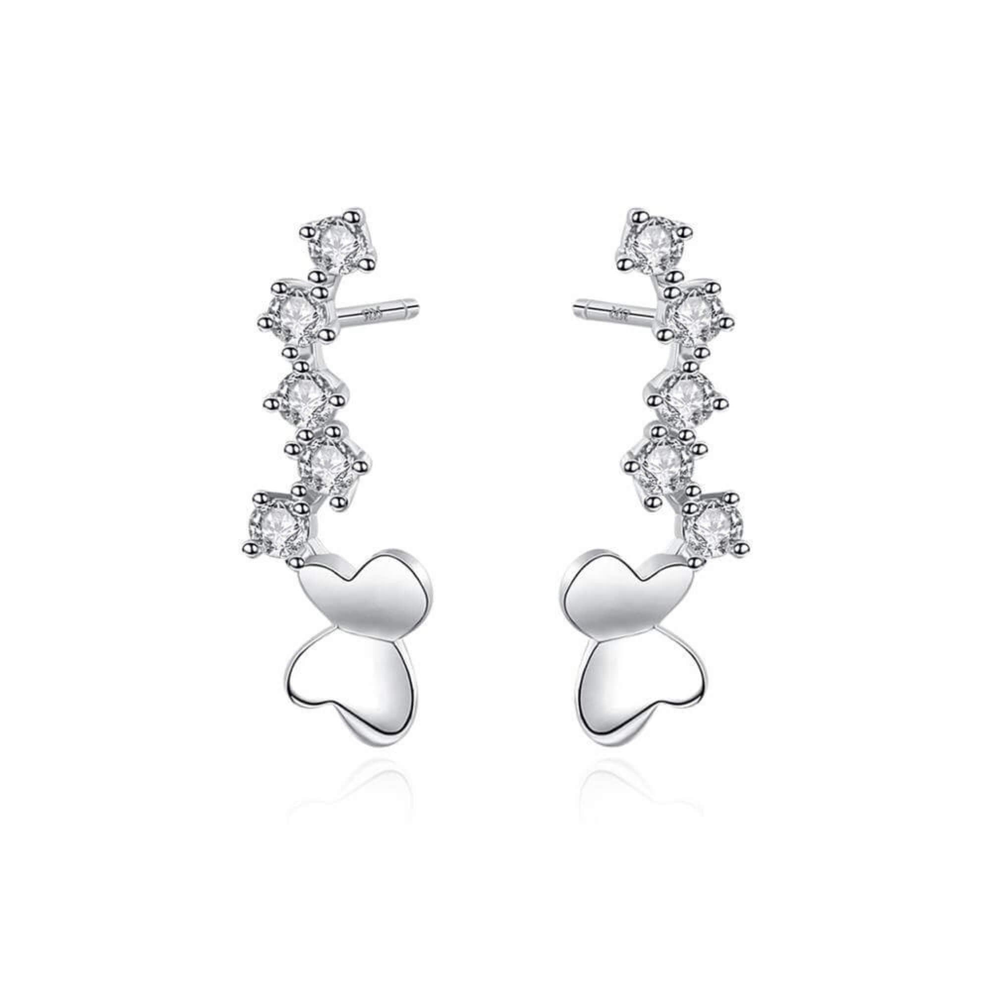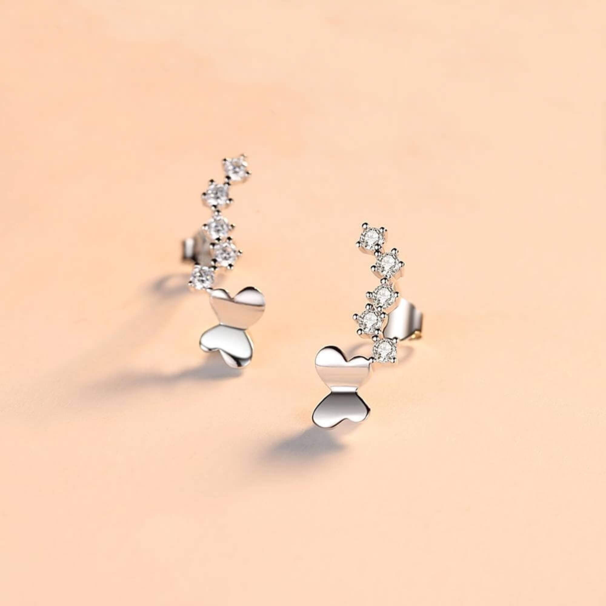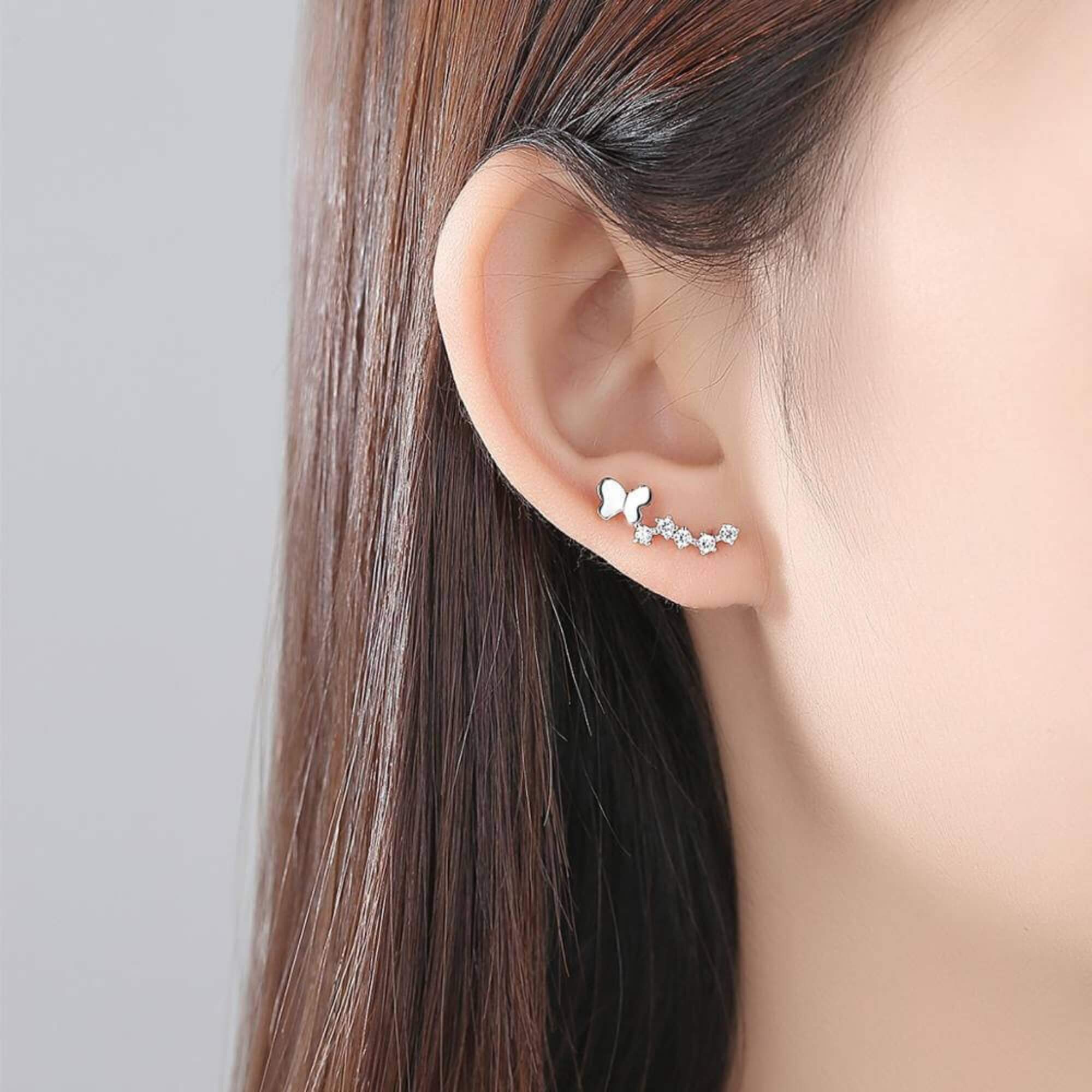 Silver earrings shaped like butterflies that gently trace the curve of the ear. Light and delicate, they sit comfortably while offering a nature-inspired detail that feels effortless.