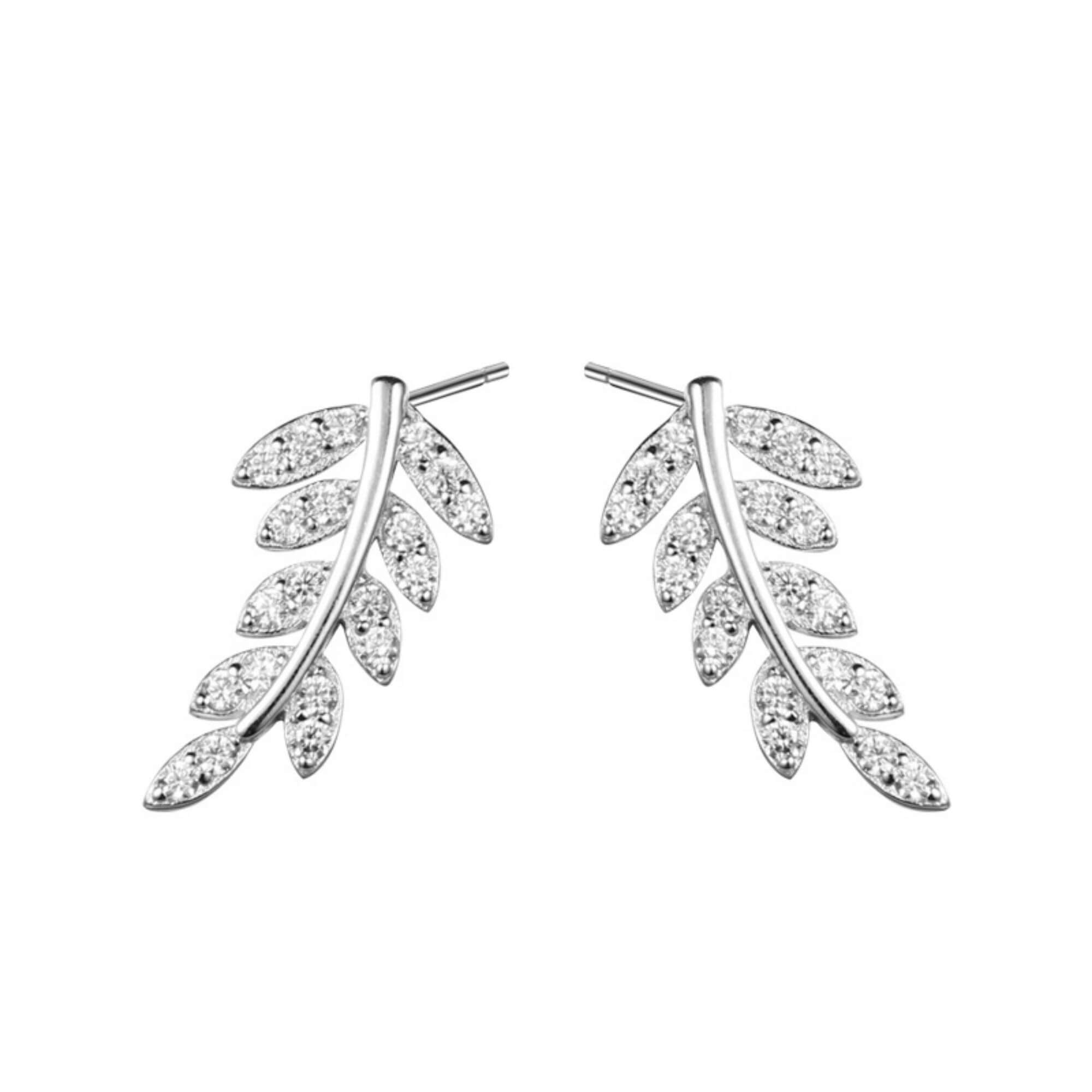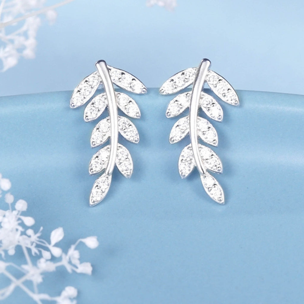 Silver leaf earrings with a light, airy silhouette, finished with rows of tiny cubic zirconia for a soft shimmer. Comfortable and easy to style, they bring a gentle, nature-inspired charm to any look.