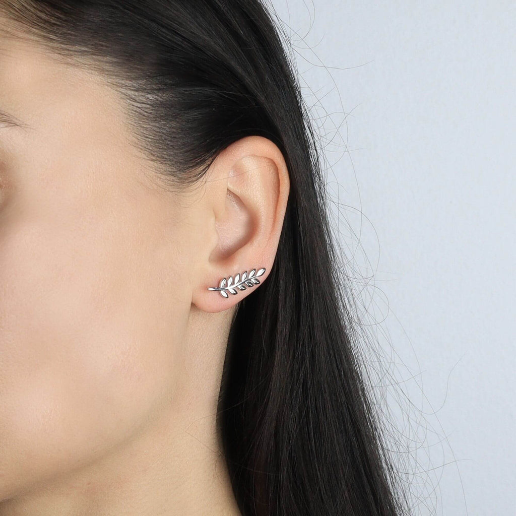 A pair of silver earrings with a soft floral shape that follows the curve of the ear. Designed to feel easy and comfortable, they add a fresh detail to your everyday style.