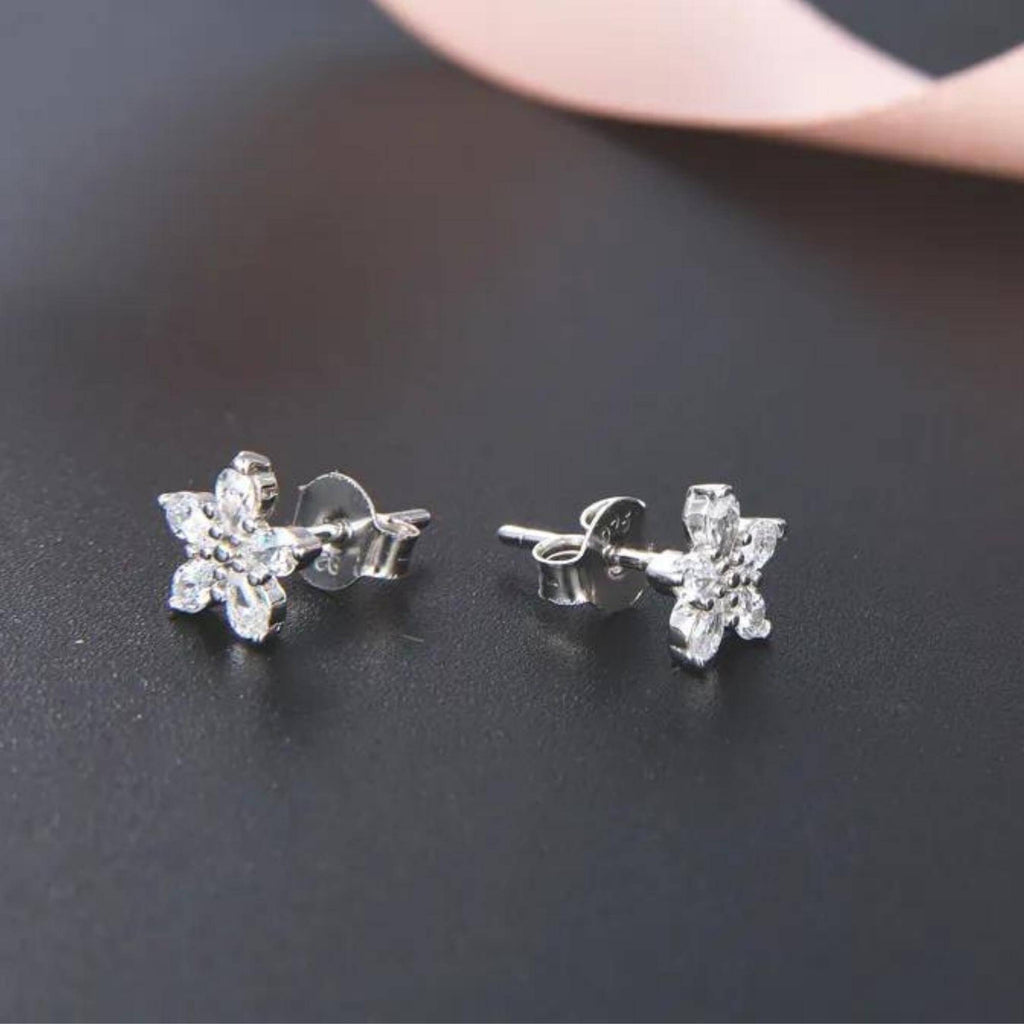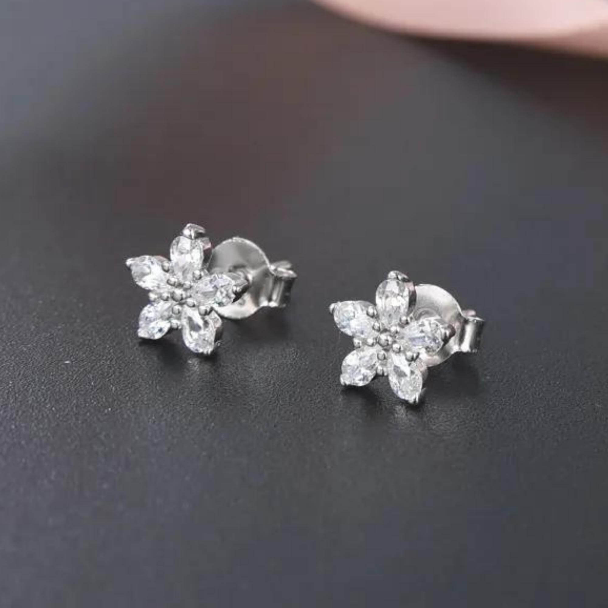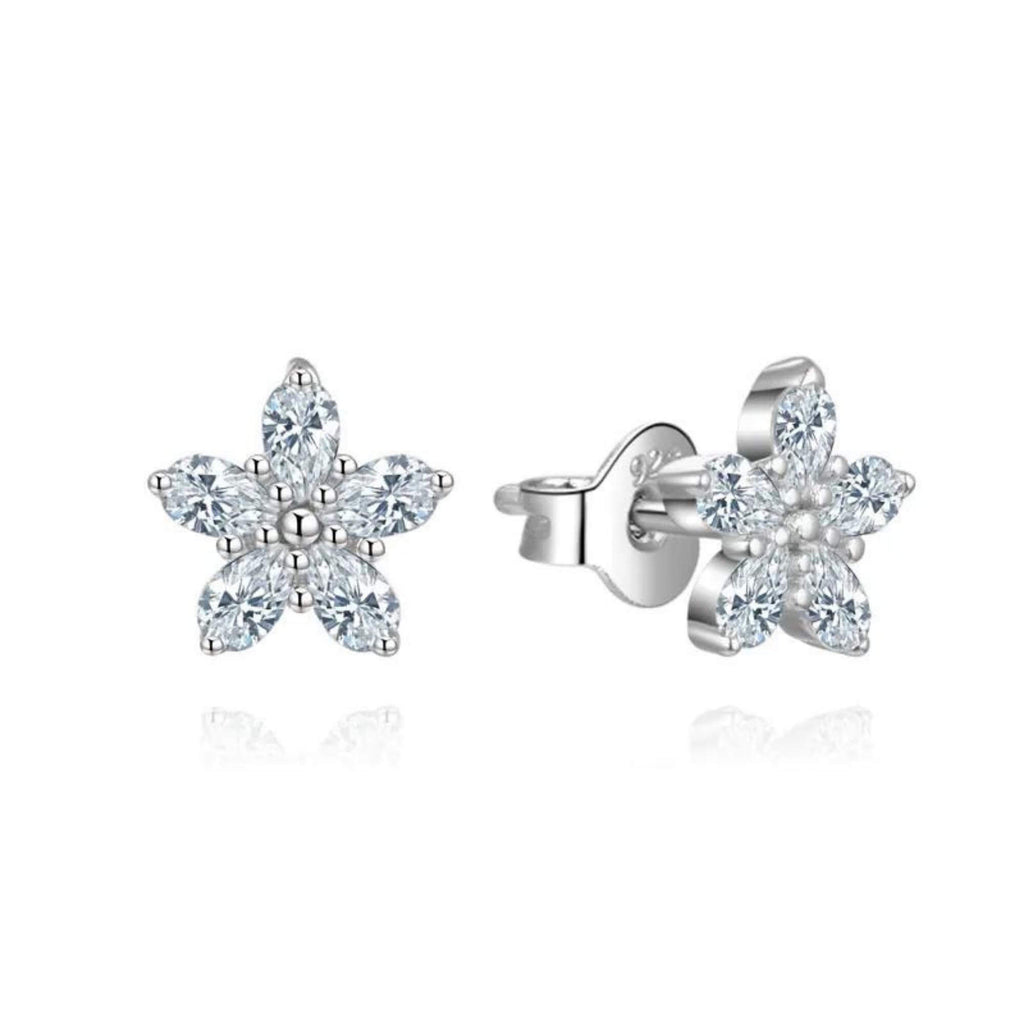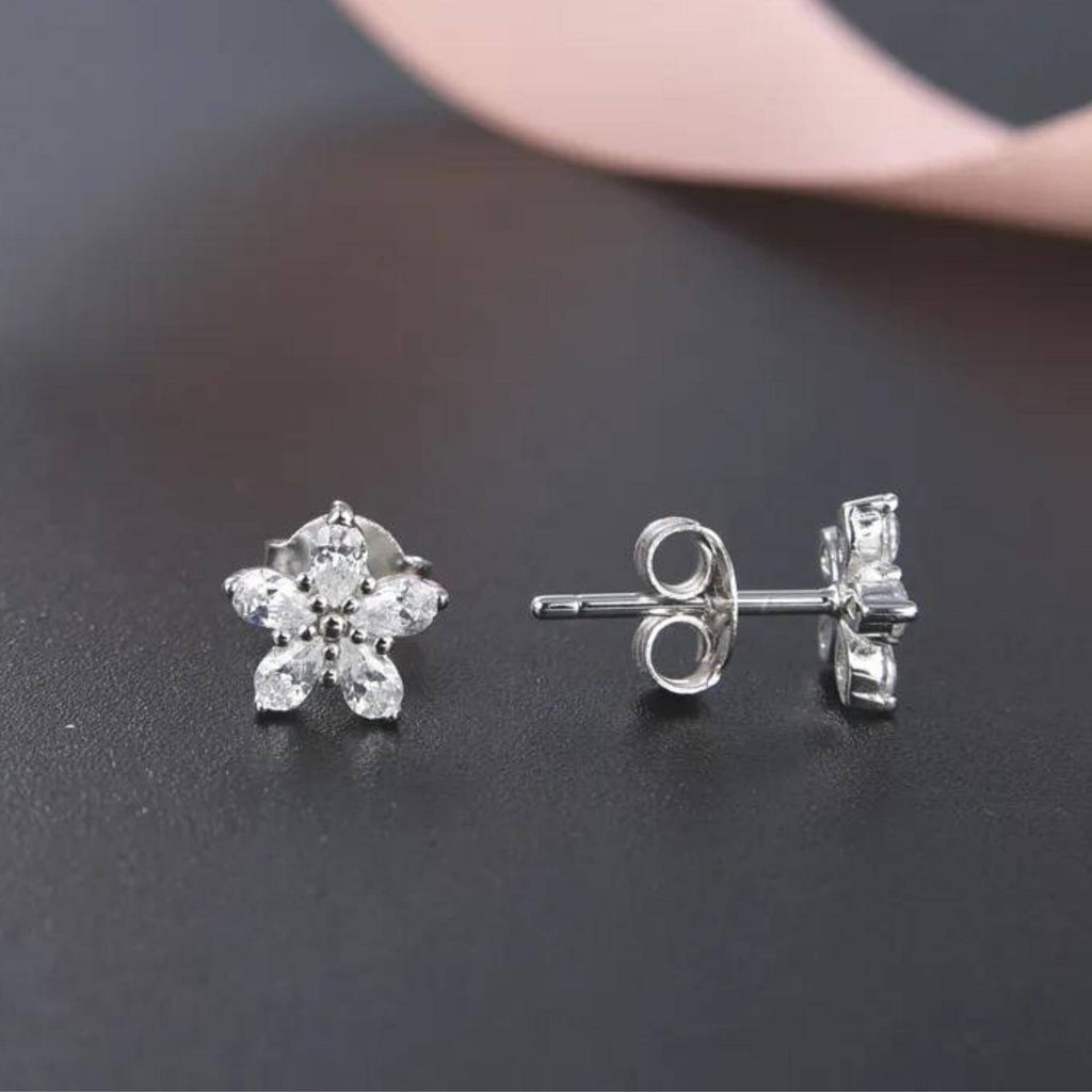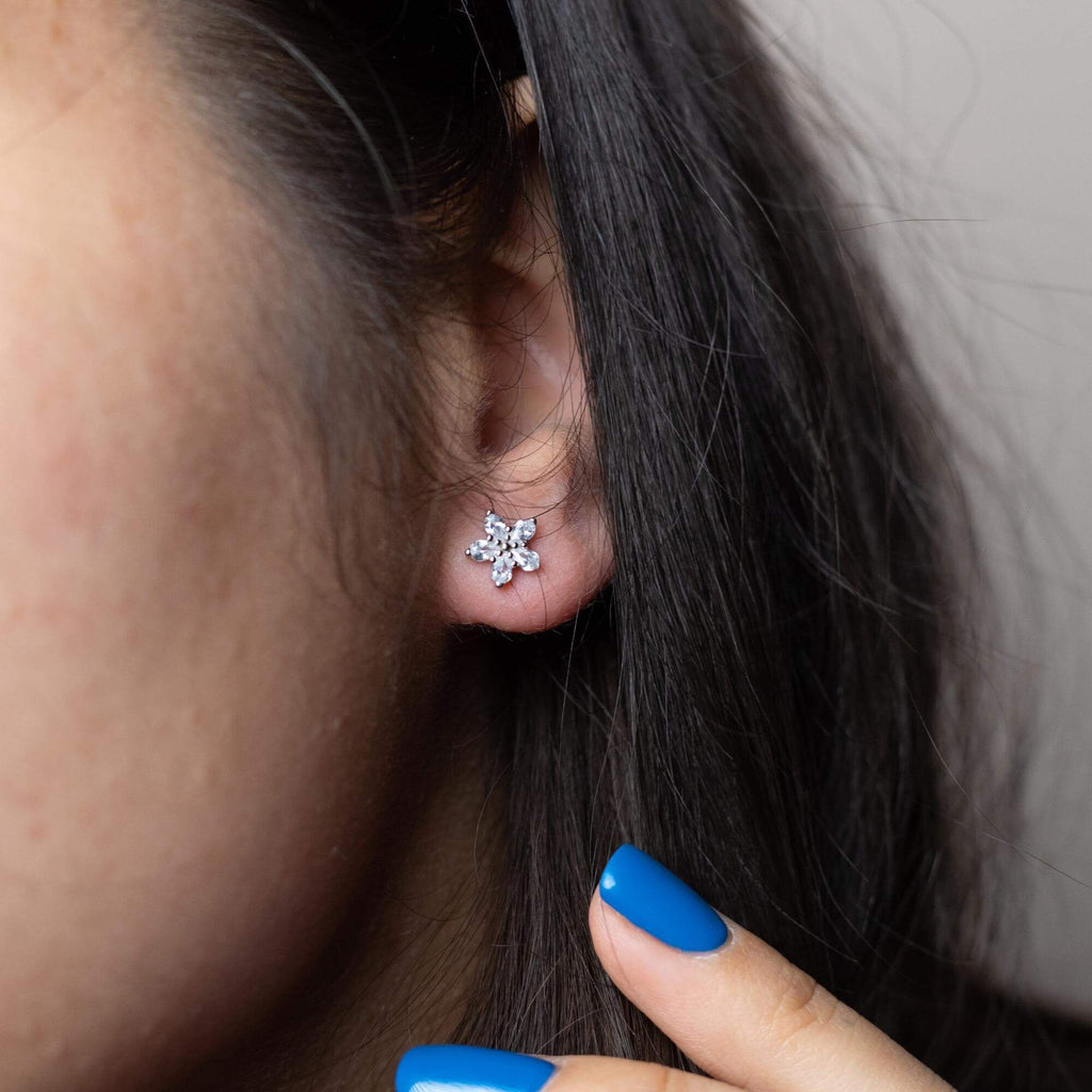Small silver earrings shaped like blossoming flowers, with a soft shine that will gently peek through your hair. Their subtle design adds a natural and relaxed feel to your look, making them a lovely detail for anyone drawn to floral pieces.