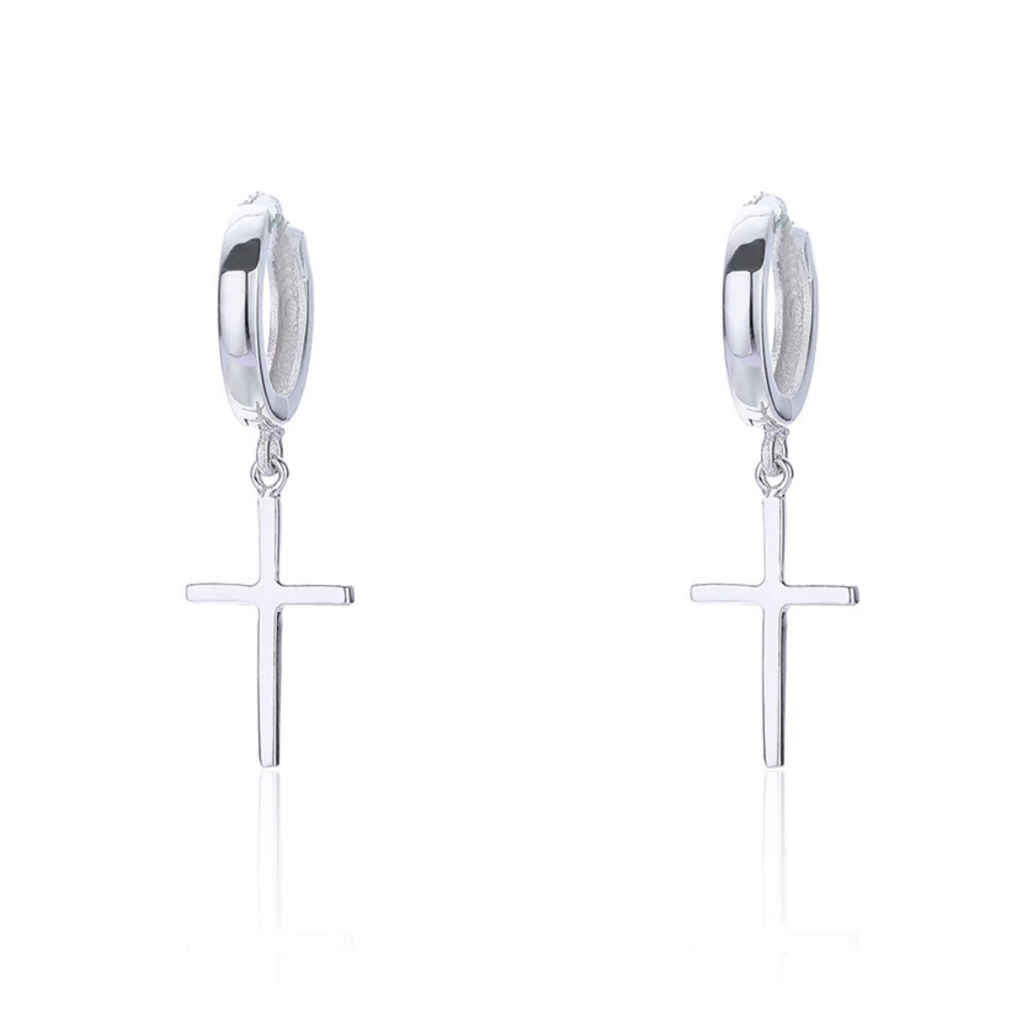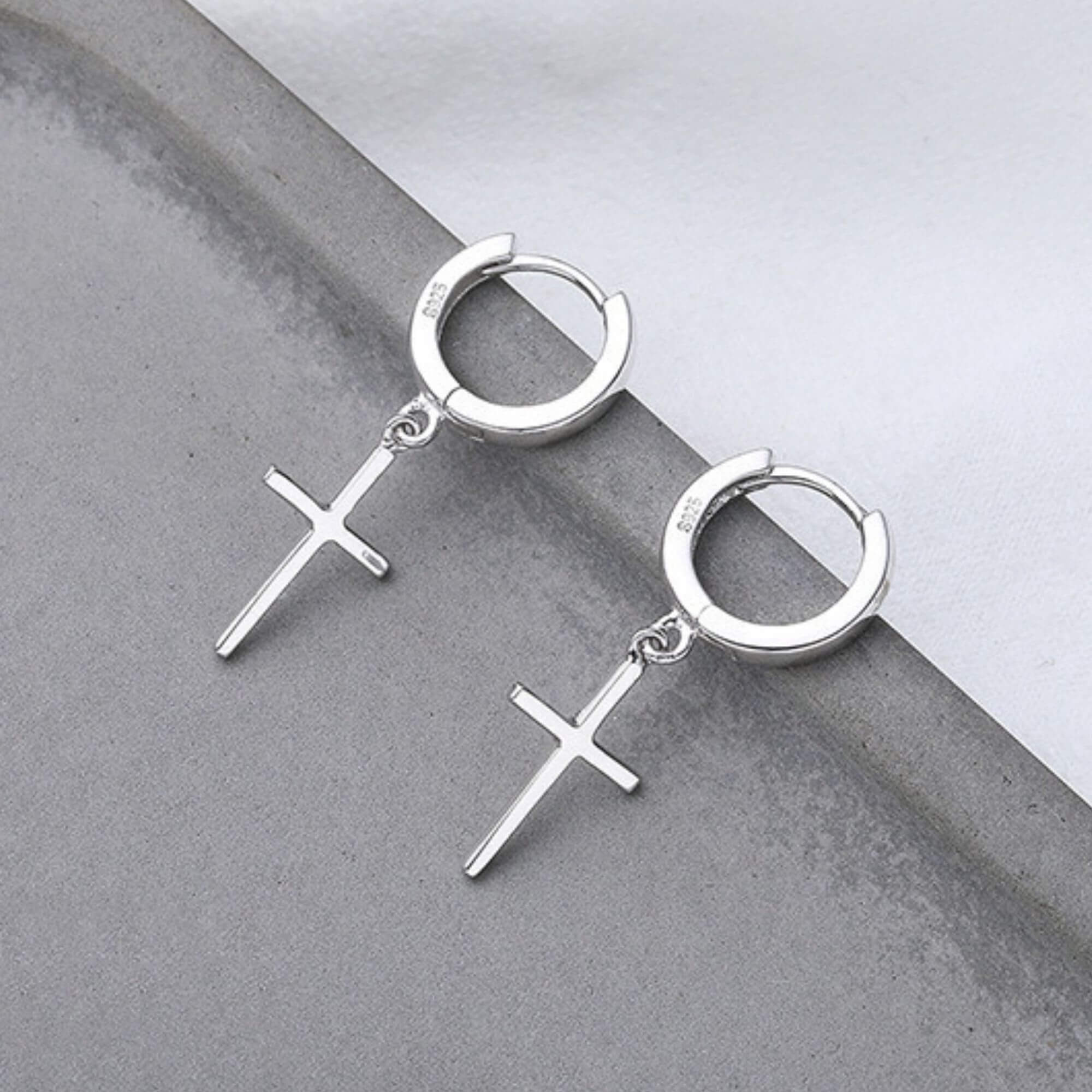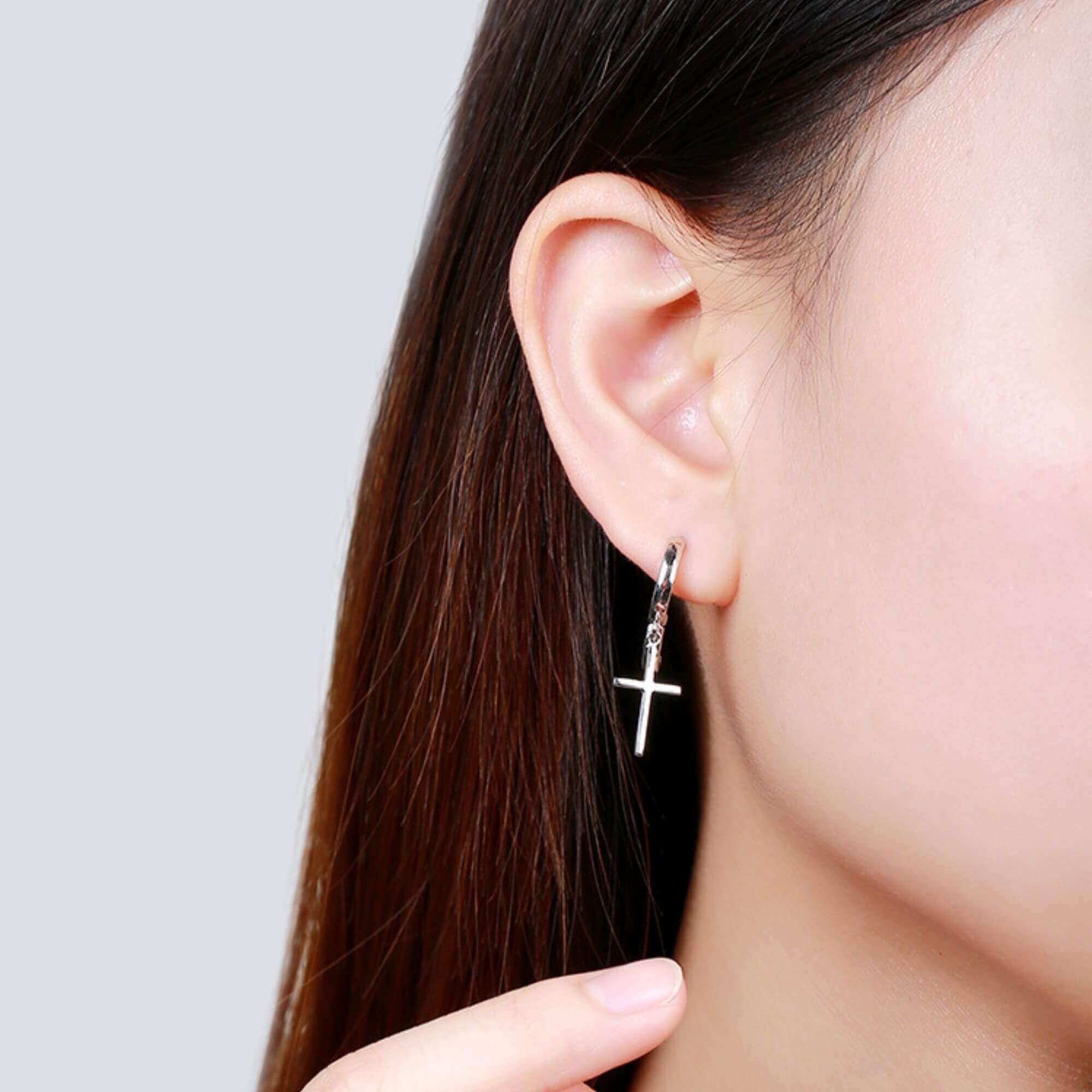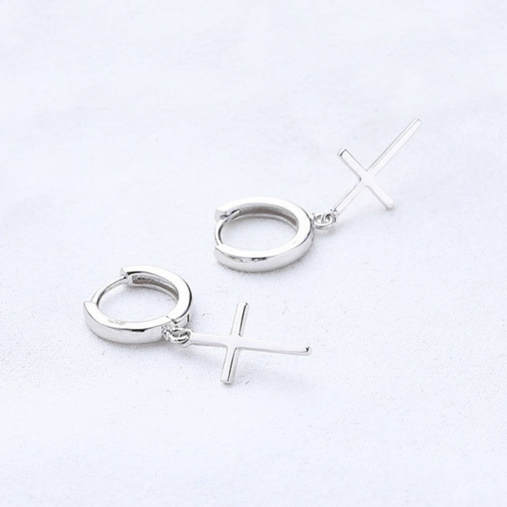 Silver huggie hoop earrings with a small cross that brings thoughtful meaning to the design. Just the right size for layering or wearing solo, they add a quiet sense of style that feels both personal and timeless.