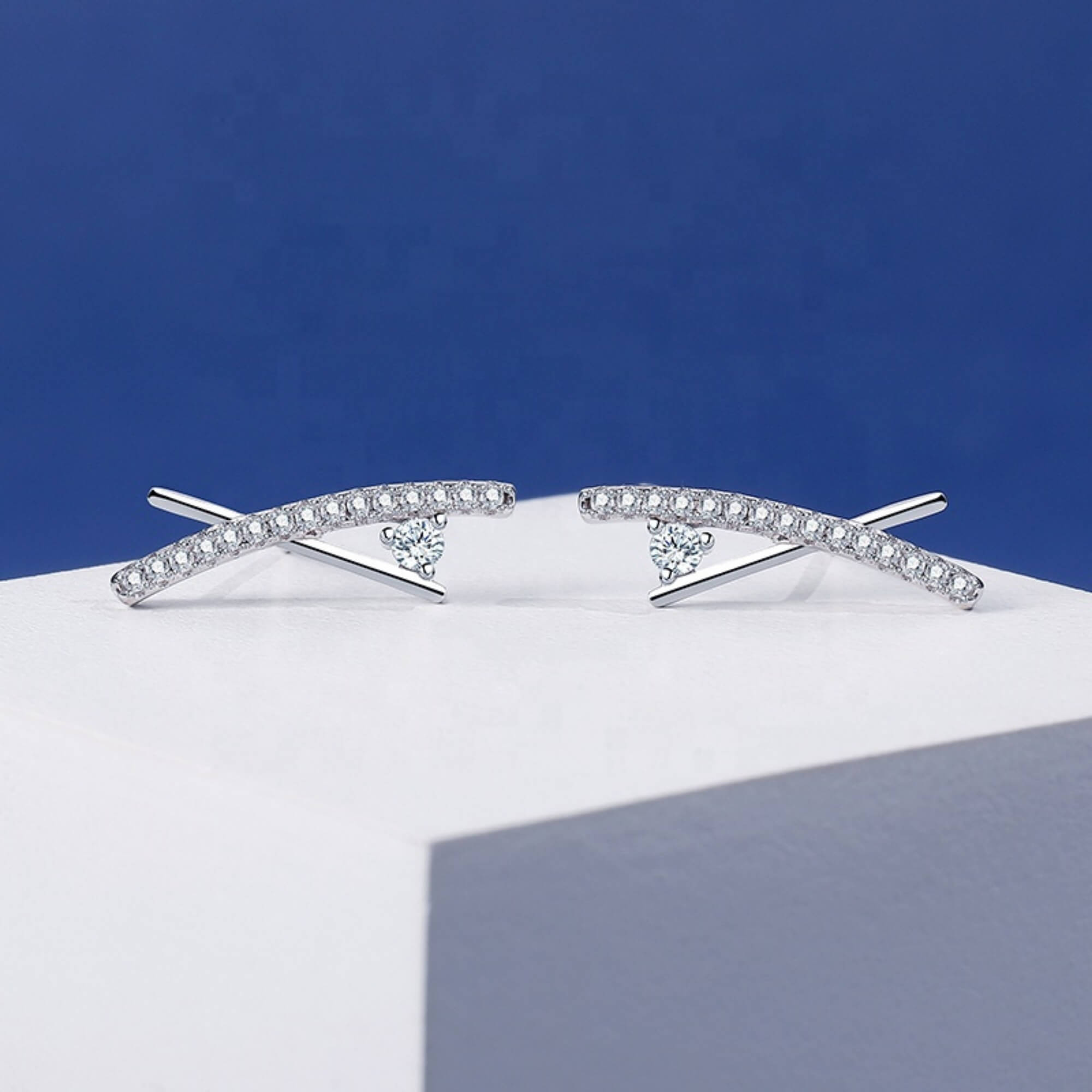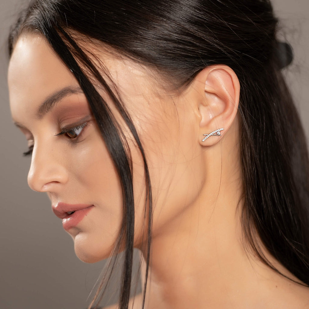 Silver crawler earrings designed to follow the ear’s natural curve, finished with a sequence of seven cubic zirconia stones that gradually taper in size. The effect is distinctive, offering shine without fuss. Available in two sizes to suit your style.