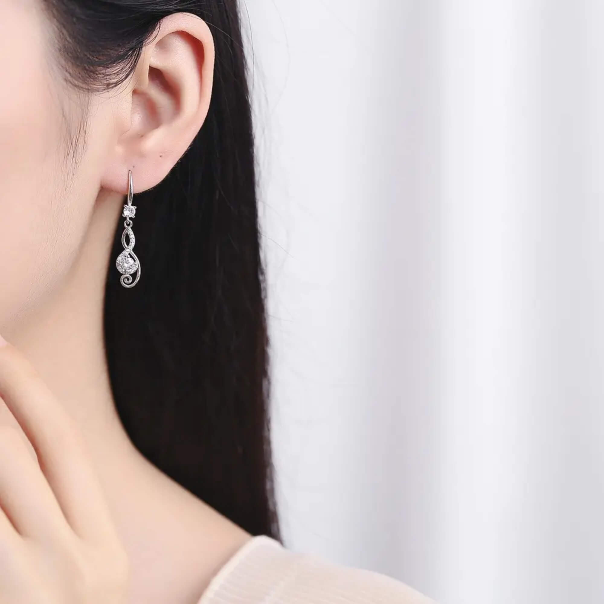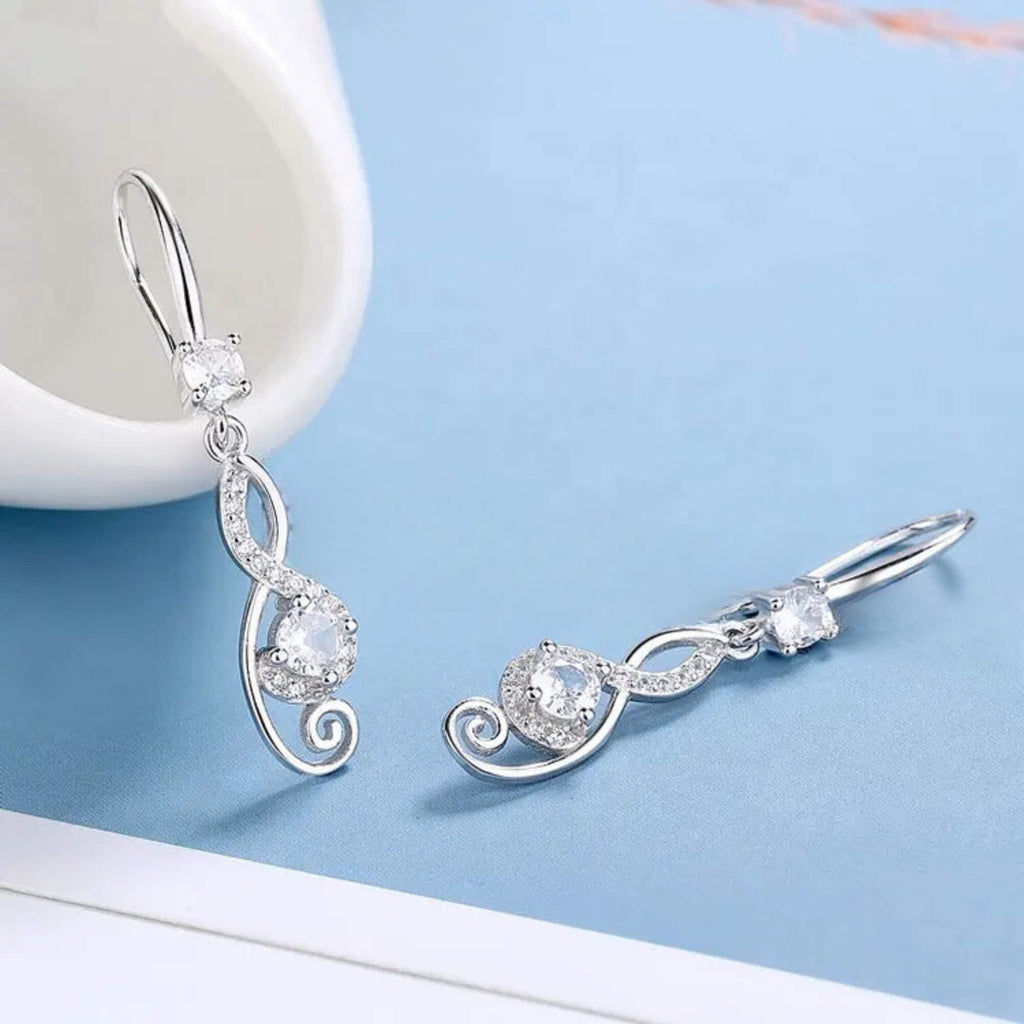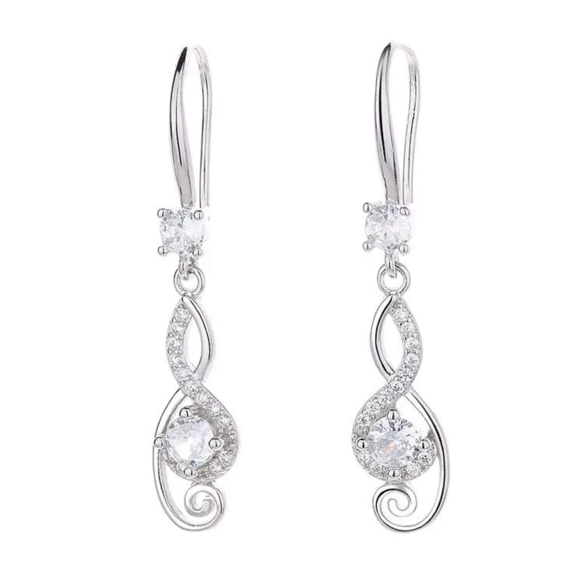Silver earrings shaped like musical notes, accented with cubic zirconia stones for a bit of sparkle. A simple design with character, ideal for anyone who loves music and wants a piece they can wear every day.