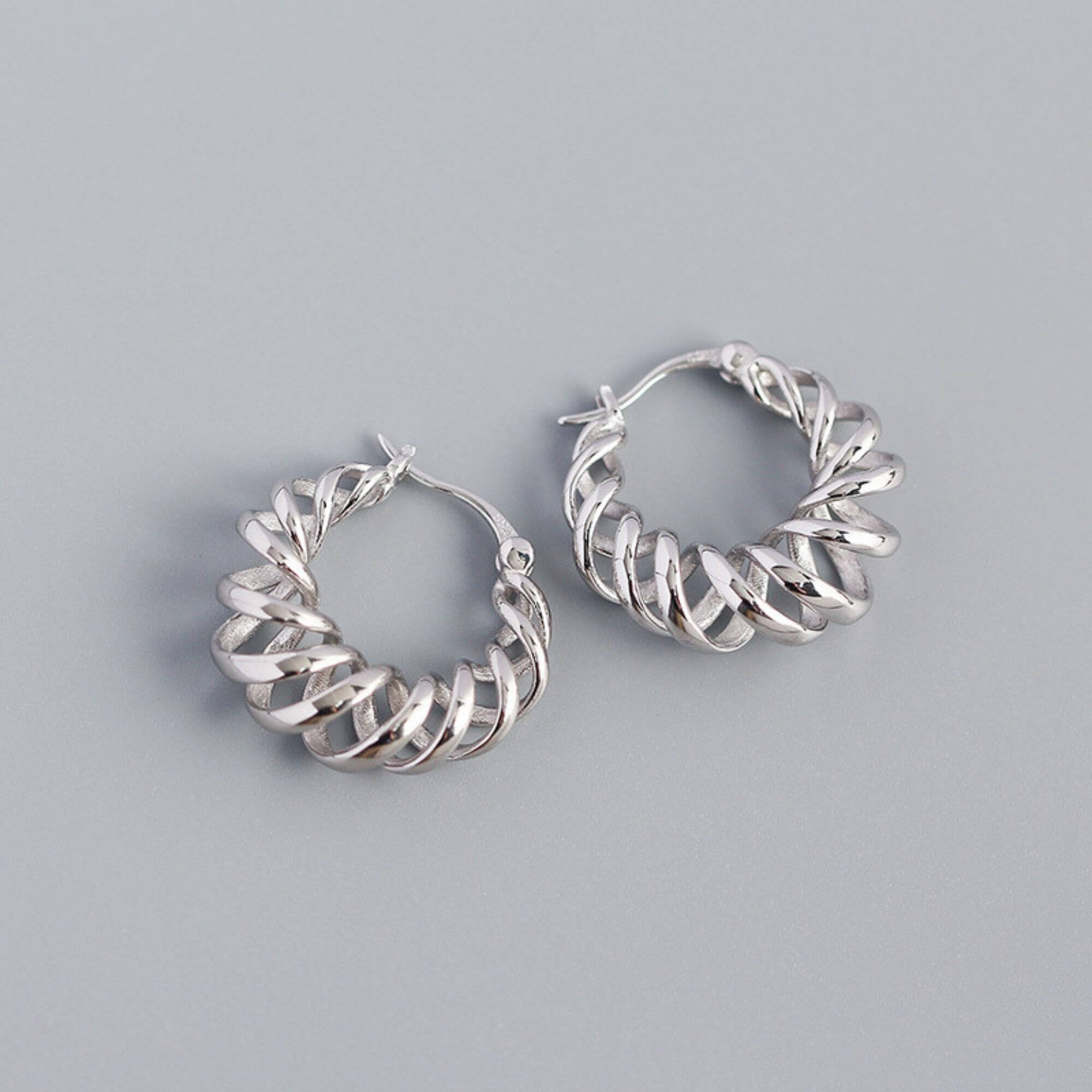 Silver earrings with a spiral-shaped design that draws the eye with its minimalist, contemporary shapes. Made for those drawn to pieces with quiet impact, they bring a creative edge to your collection without feeling overpowering.