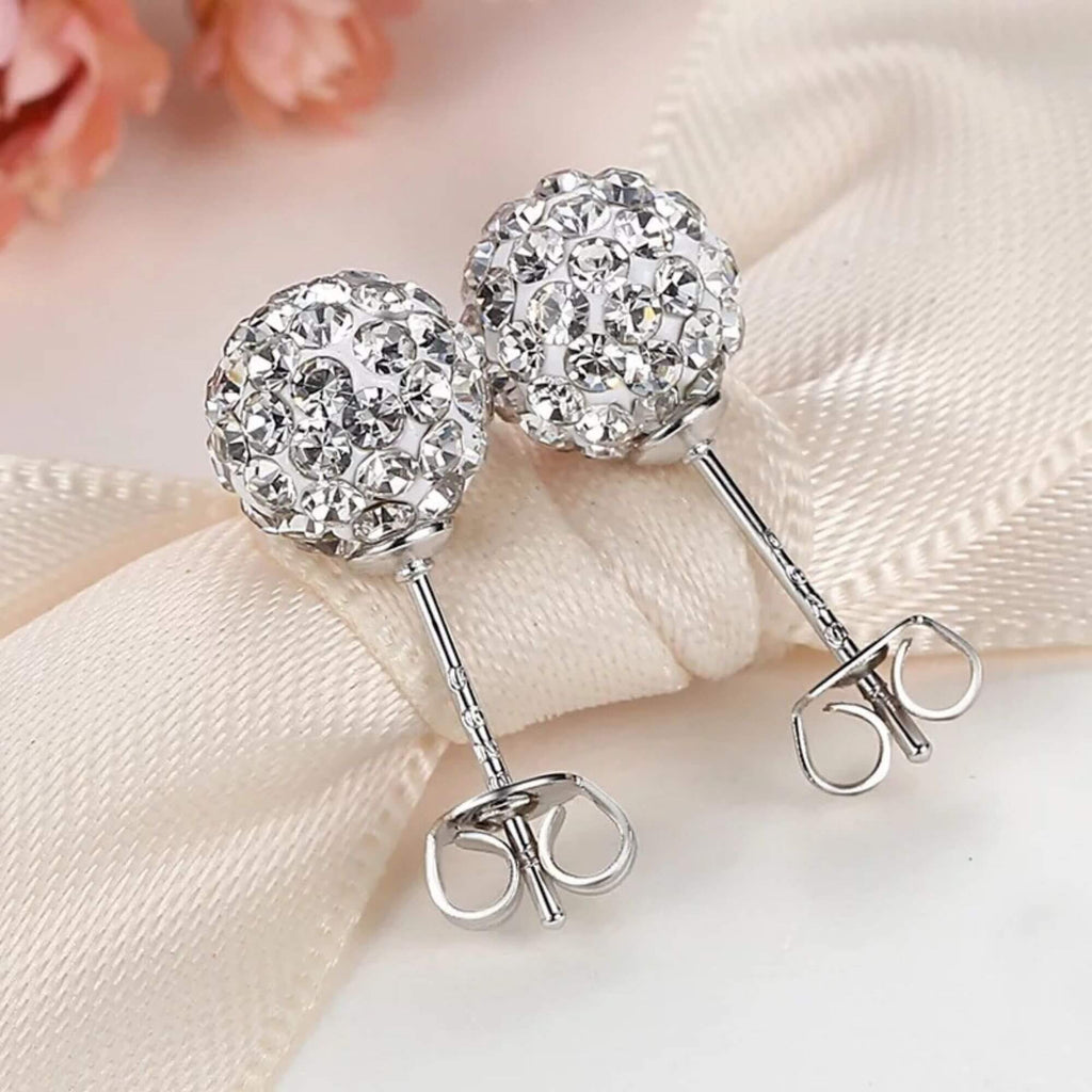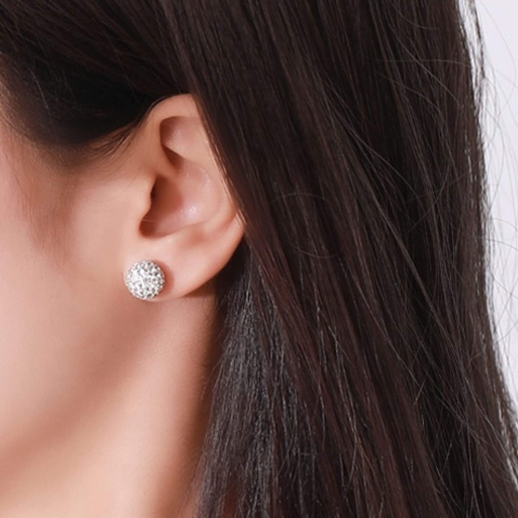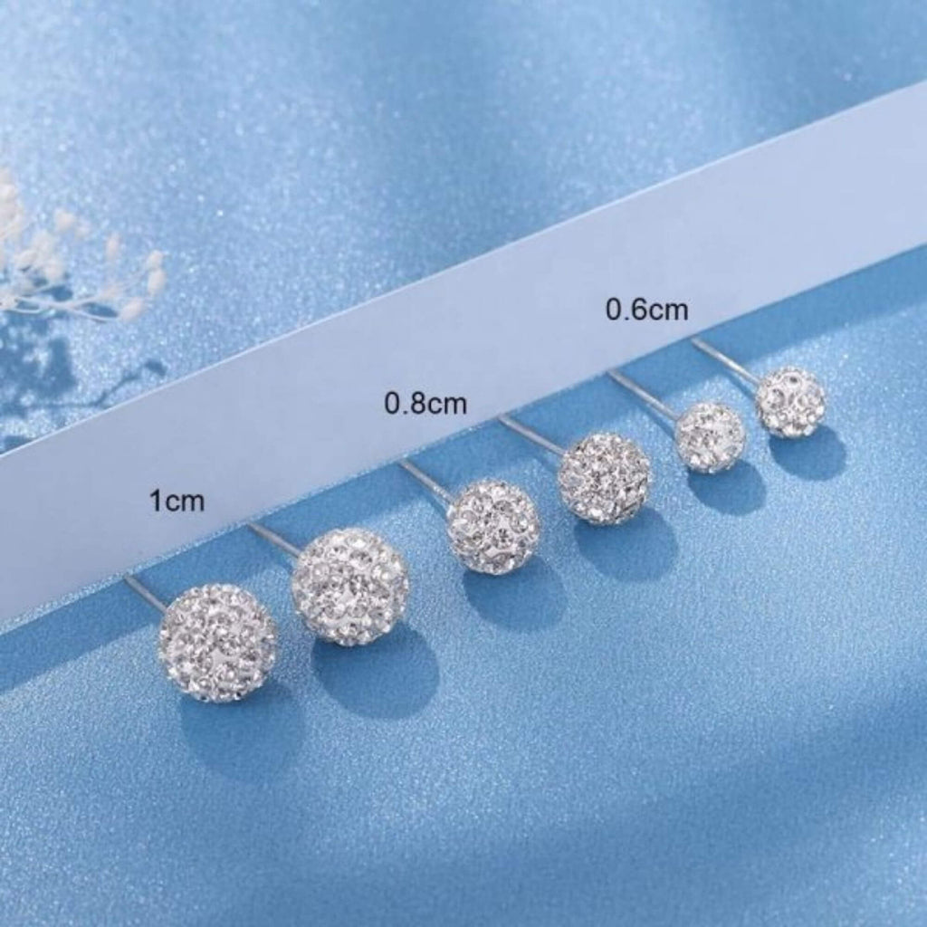 Silver stud earrings, covered in cubic zirconia, available in three different sizes. Wear them on their own for a clean, minimal look, or mix them into a curated ear stack. Sometimes the simplest piece does the most.
