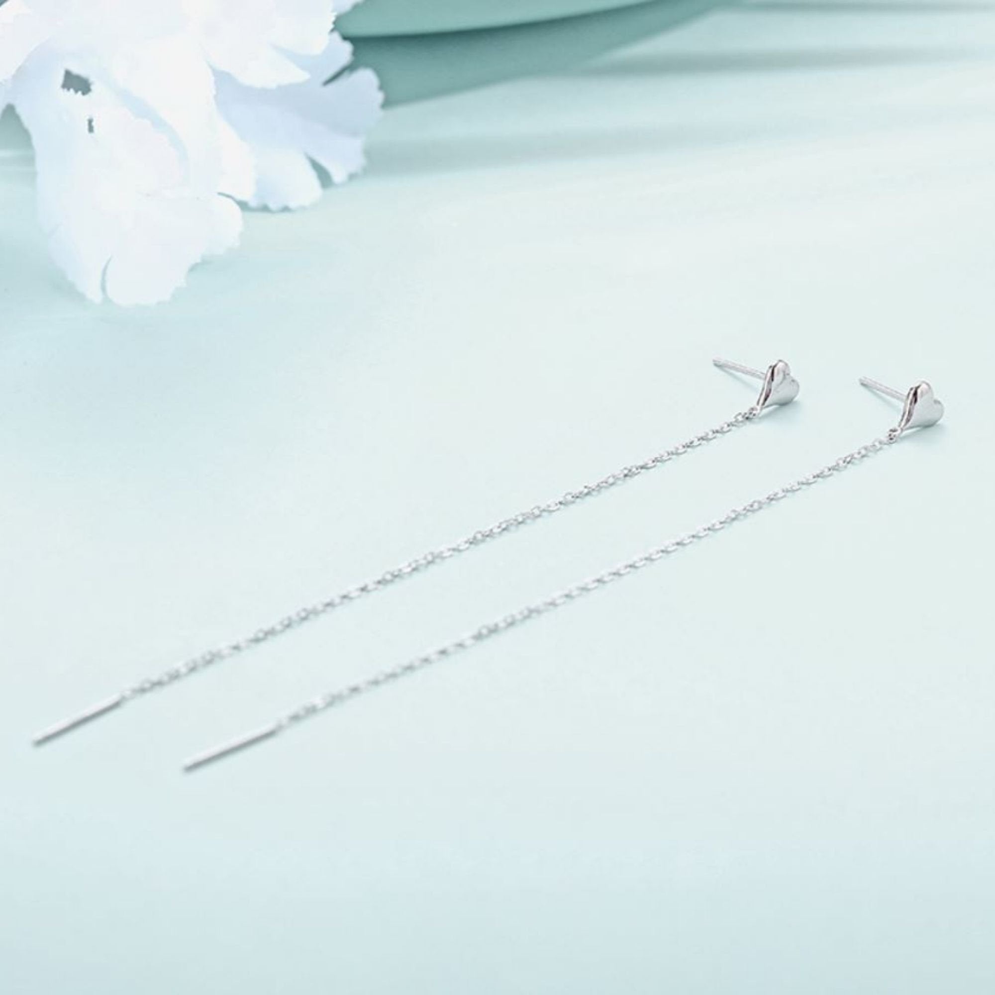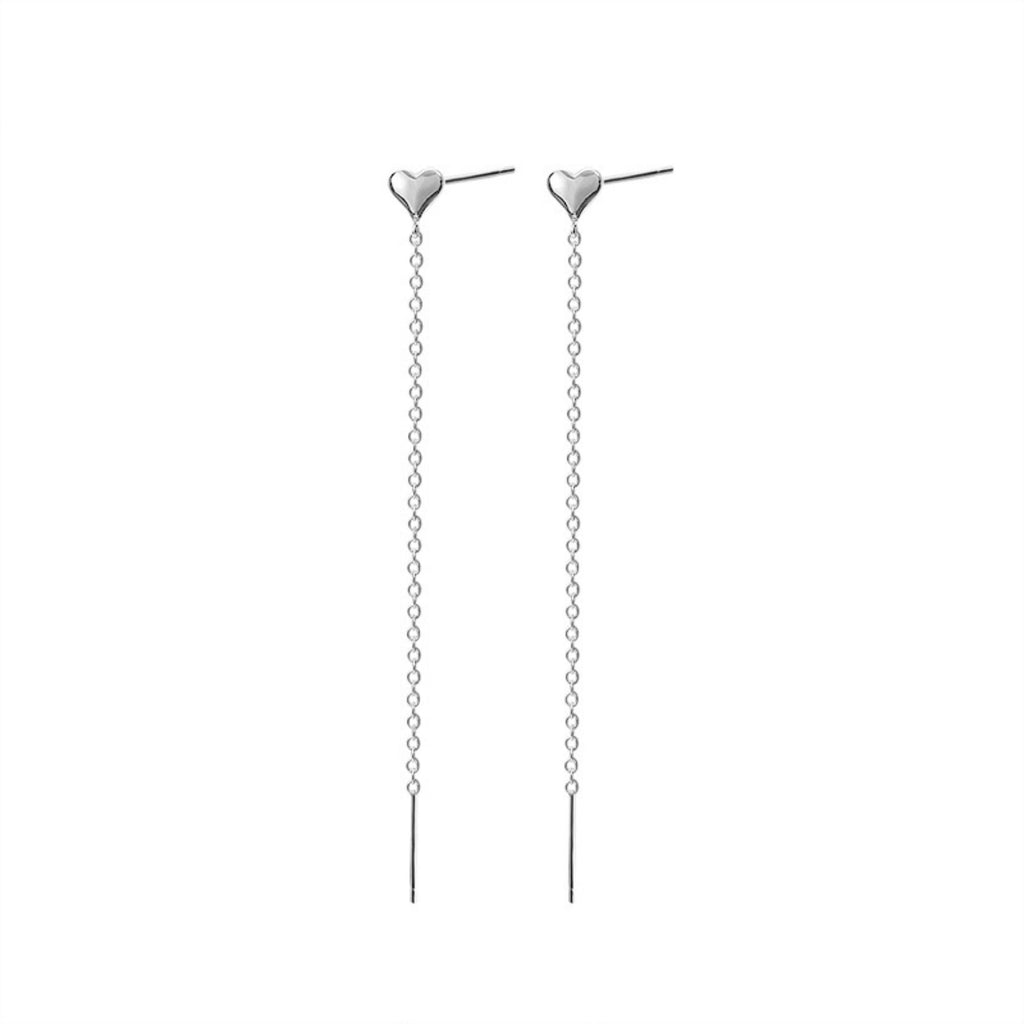 Measuring 10.5 centimeters, these silver earrings pair their length with a sweet heart-shaped detail. Whether worn for romance or simply for the shape, they offer a perfect blend of strength and softness.