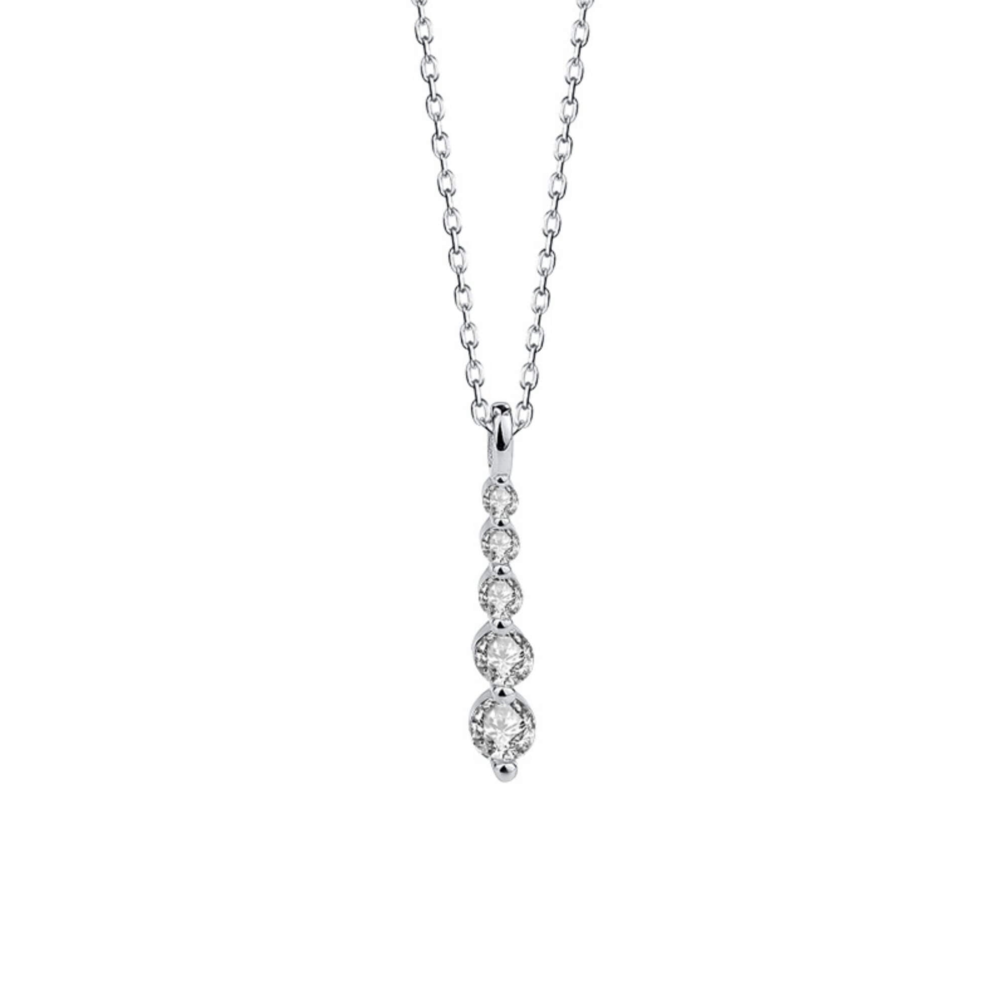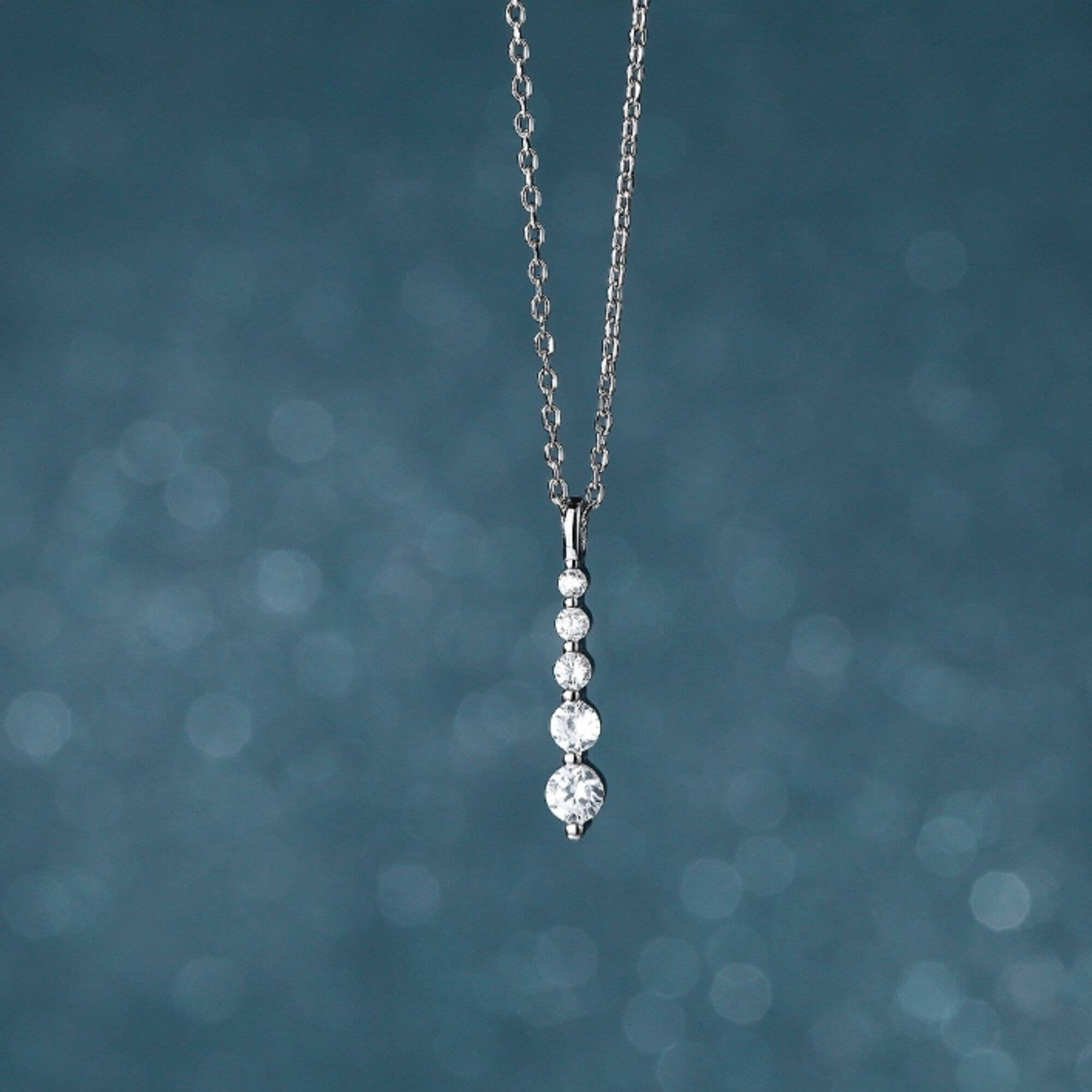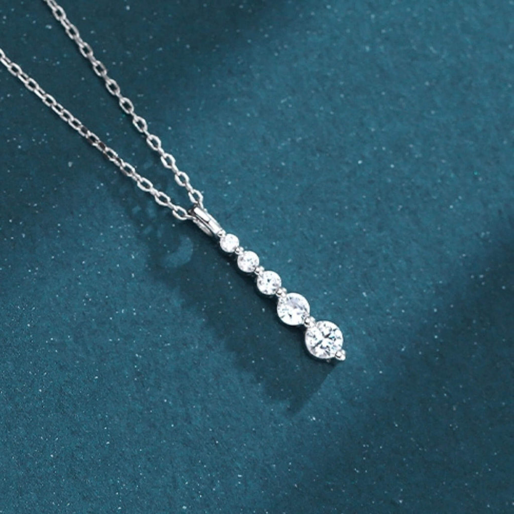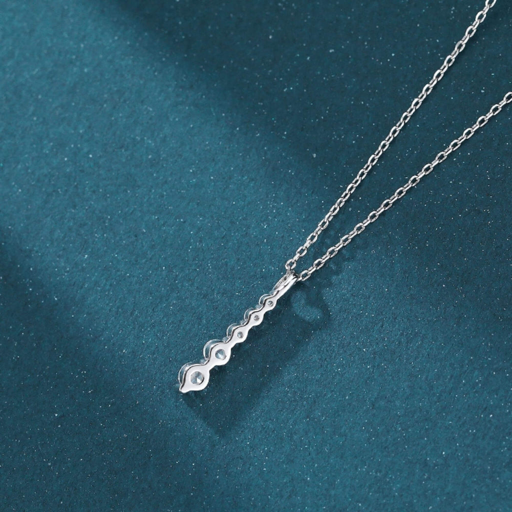 Sterling silver necklace with a delicate drop-shaped pendant set with a vertical row of cubic zirconia stones. The arrangement creates a gentle sparkle that draws the eye, making this piece well-suited for a variety of styles.