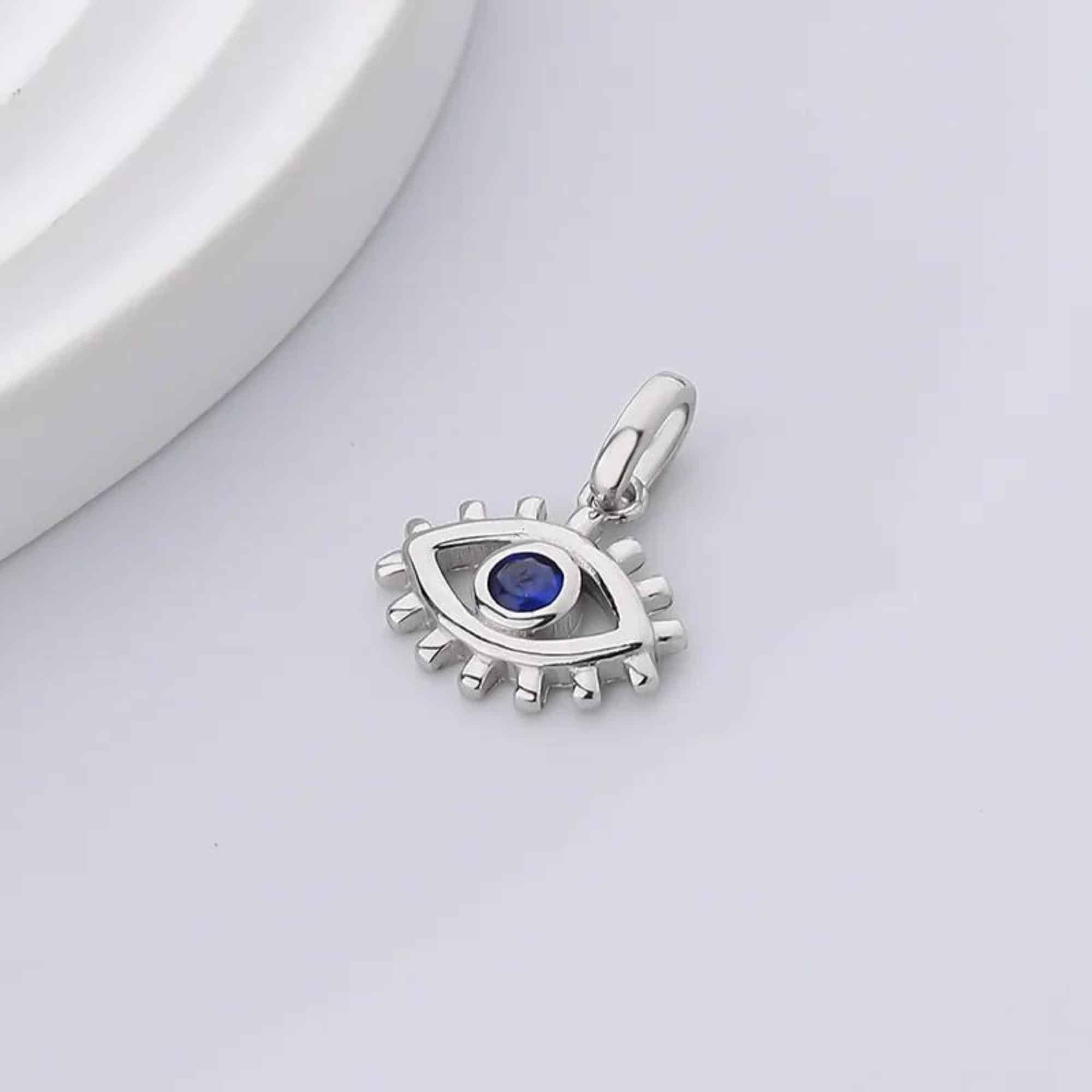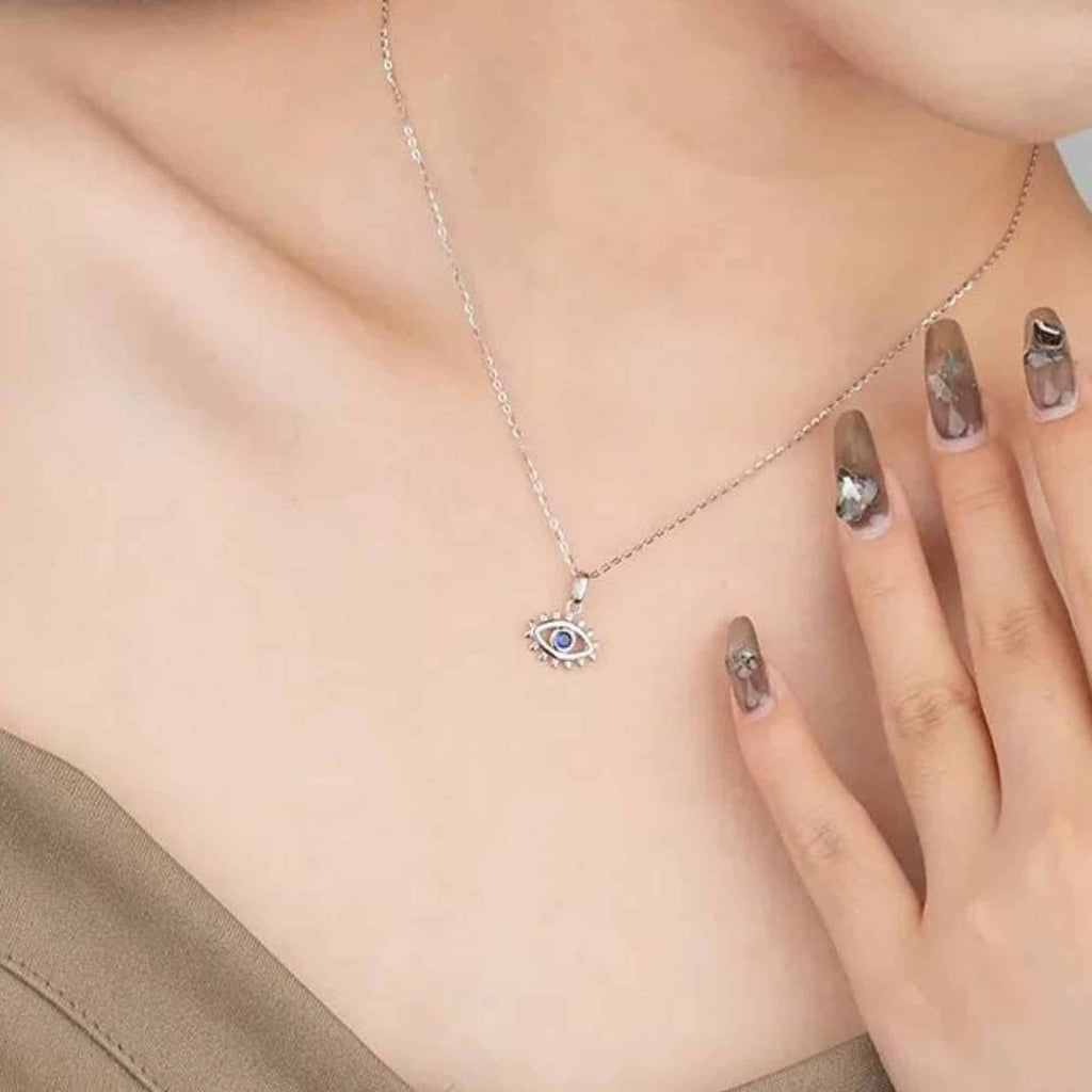 Sterling silver necklace featuring a blue eye pendant, inspired by the traditional Eye of Nazar. Known as a symbol of protection and good fortune, this simple yet meaningful design pairs effortlessly with everyday or special occasion wear.