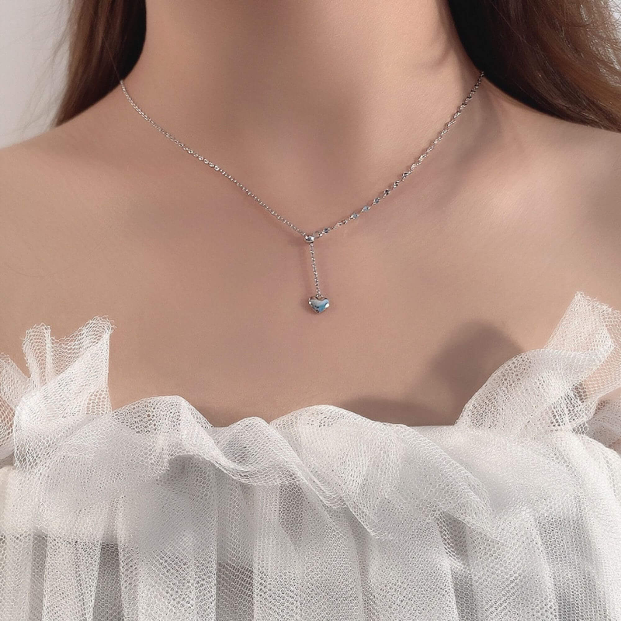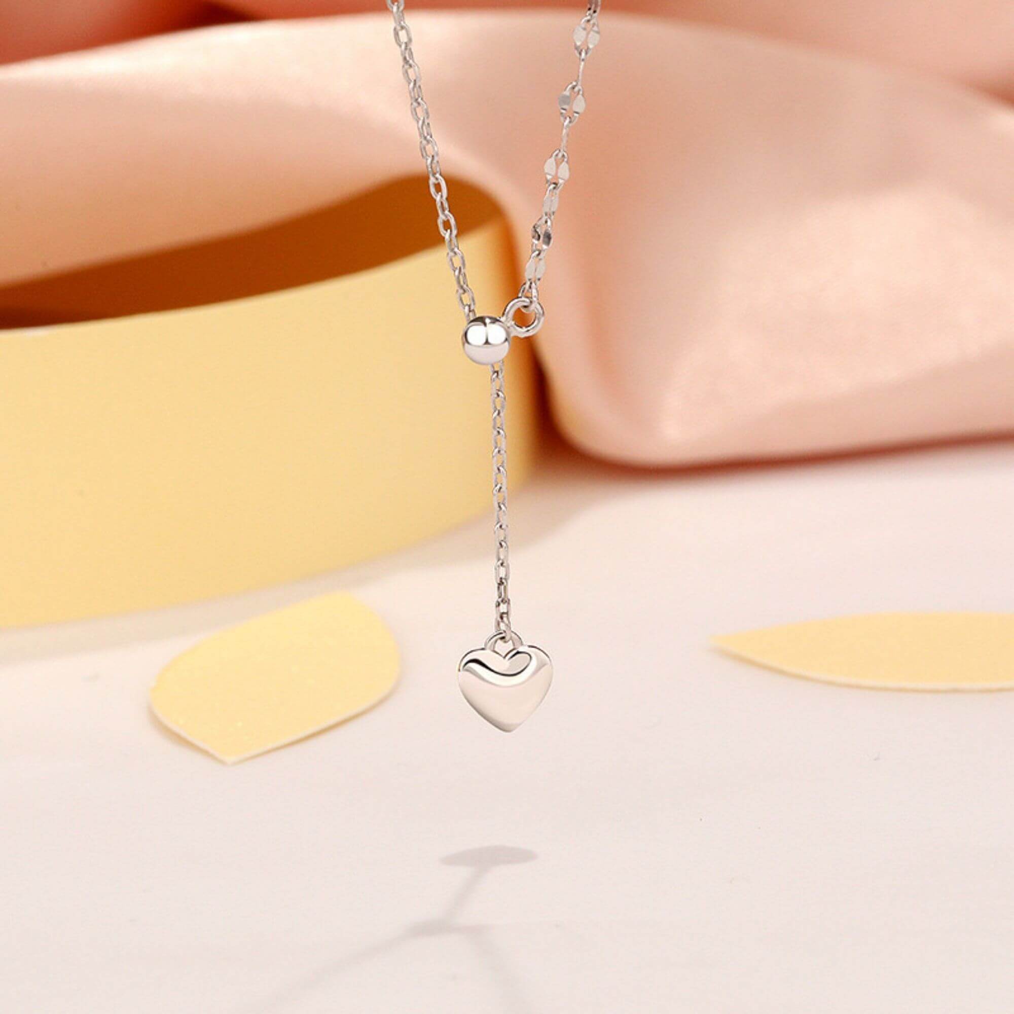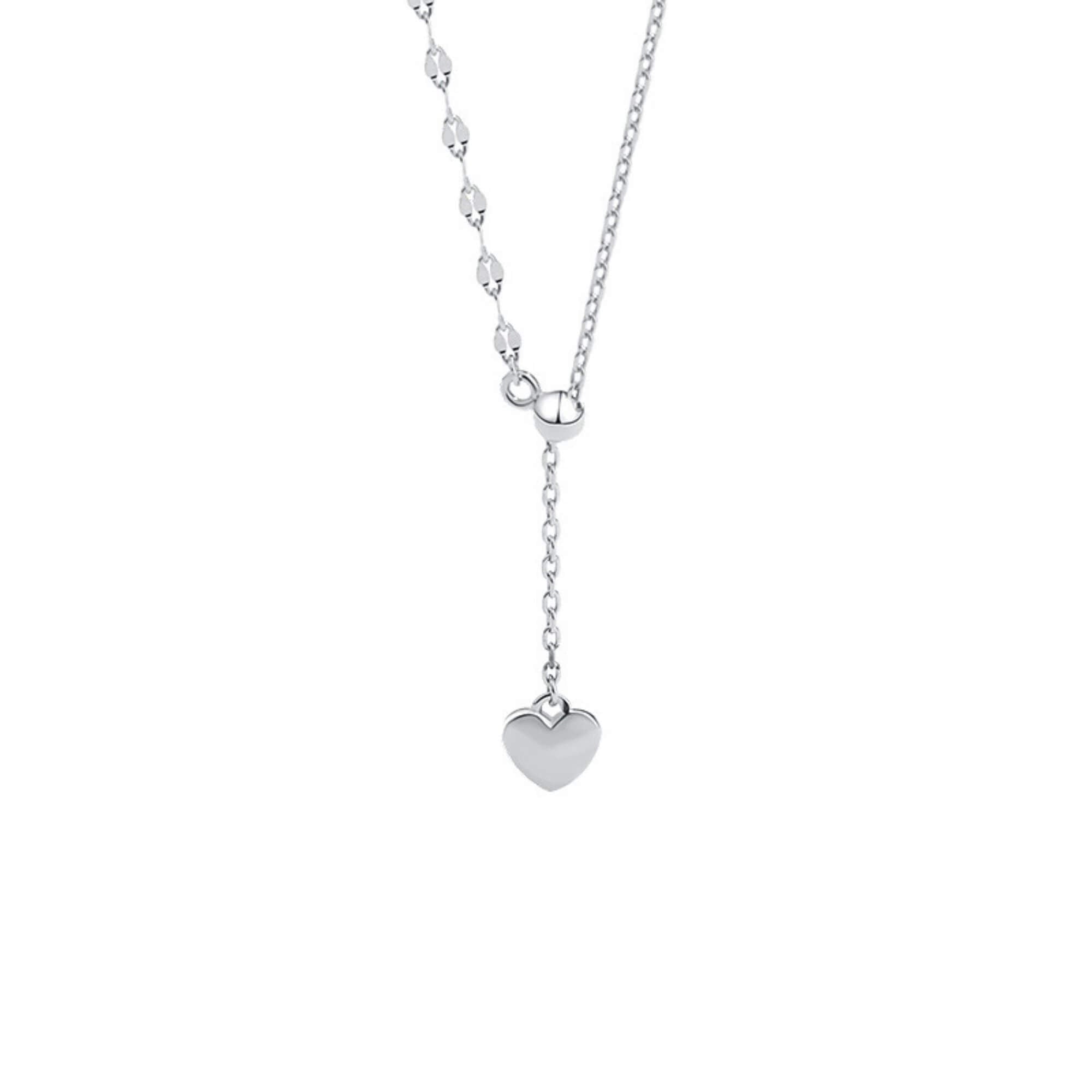 Silver necklace with a combination of classic chain links and small bead-like elements. A drop chain hangs from the center, ending in a smooth heart pendant. The simple arrangement makes it a versatile piece that can be worn for many different occasions.