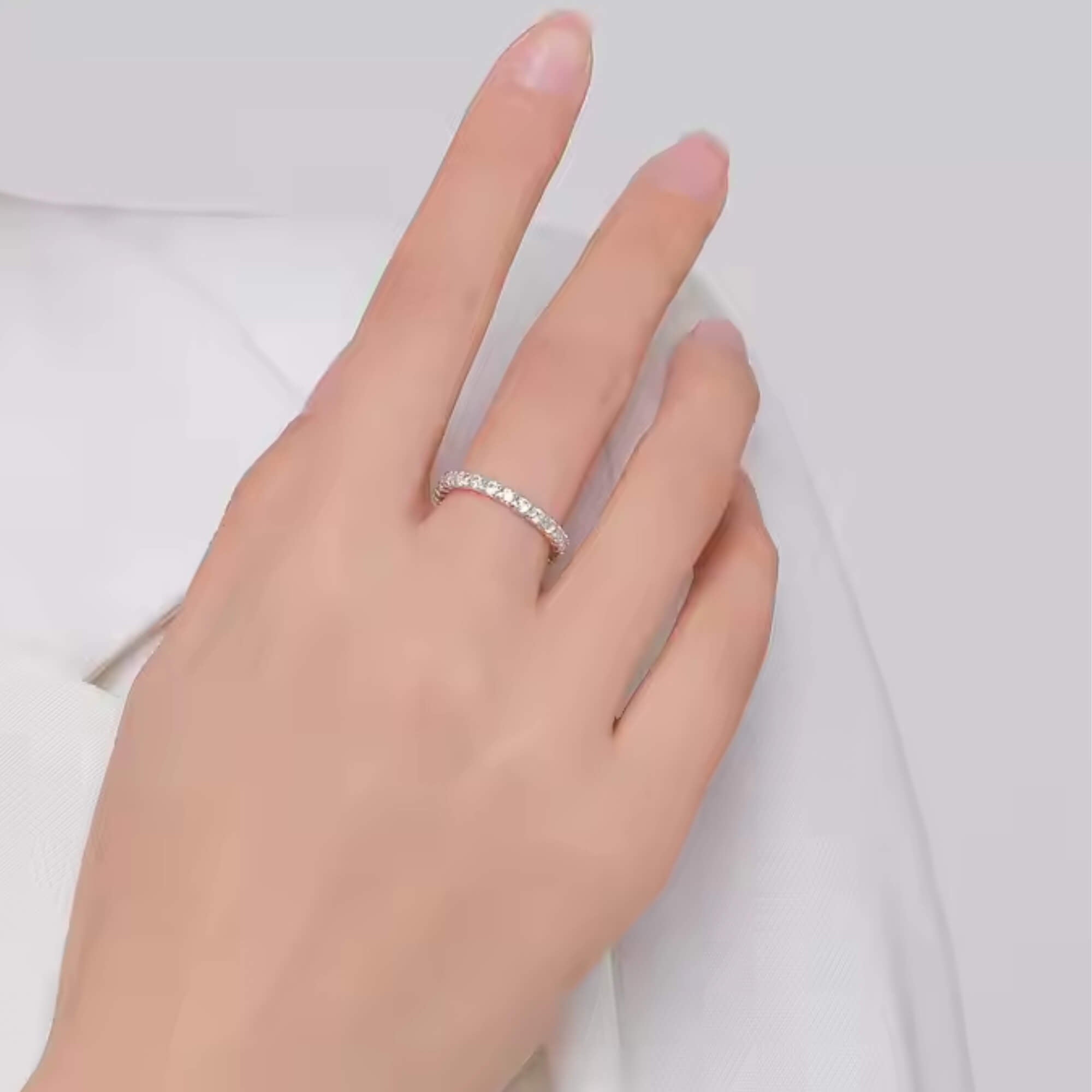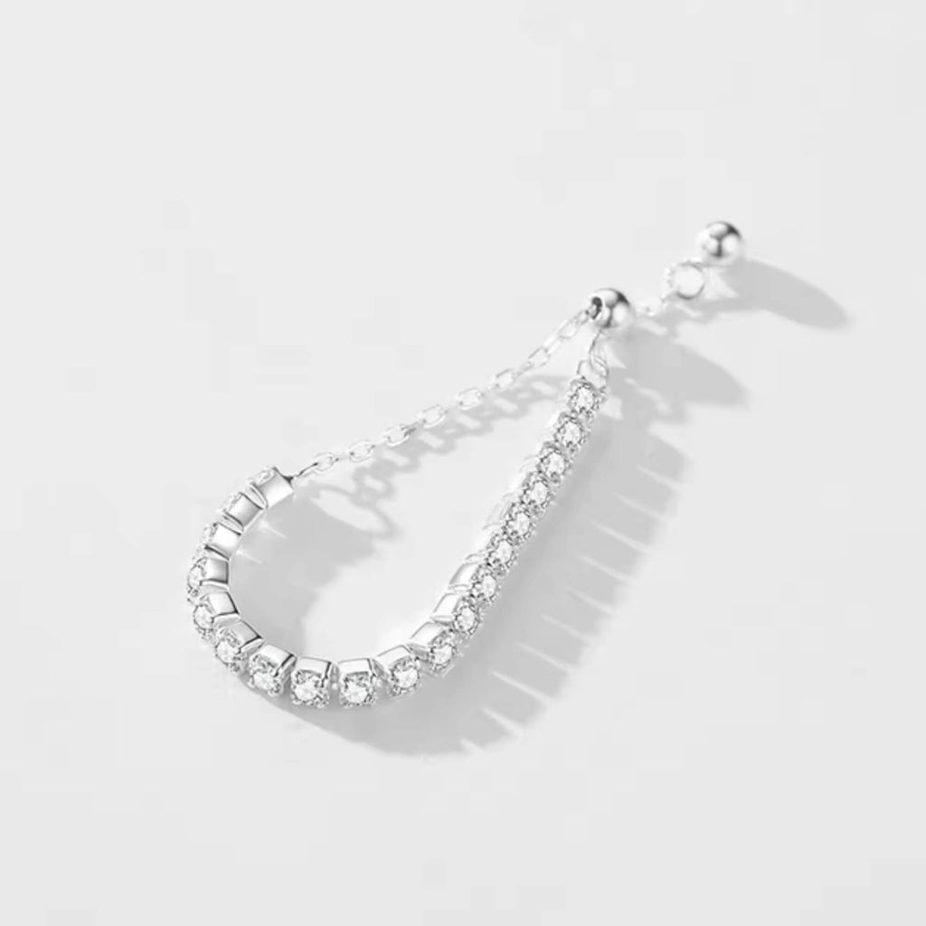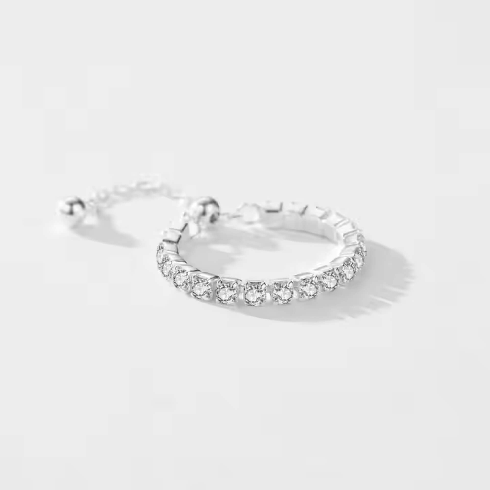 Sterling silver ring with an adjustable open design, featuring a full row of cubic zirconia across the top. The chain and slider closure keep the fit comfortable, while the simple layout offers a touch of sparkle that works with anything you wear.