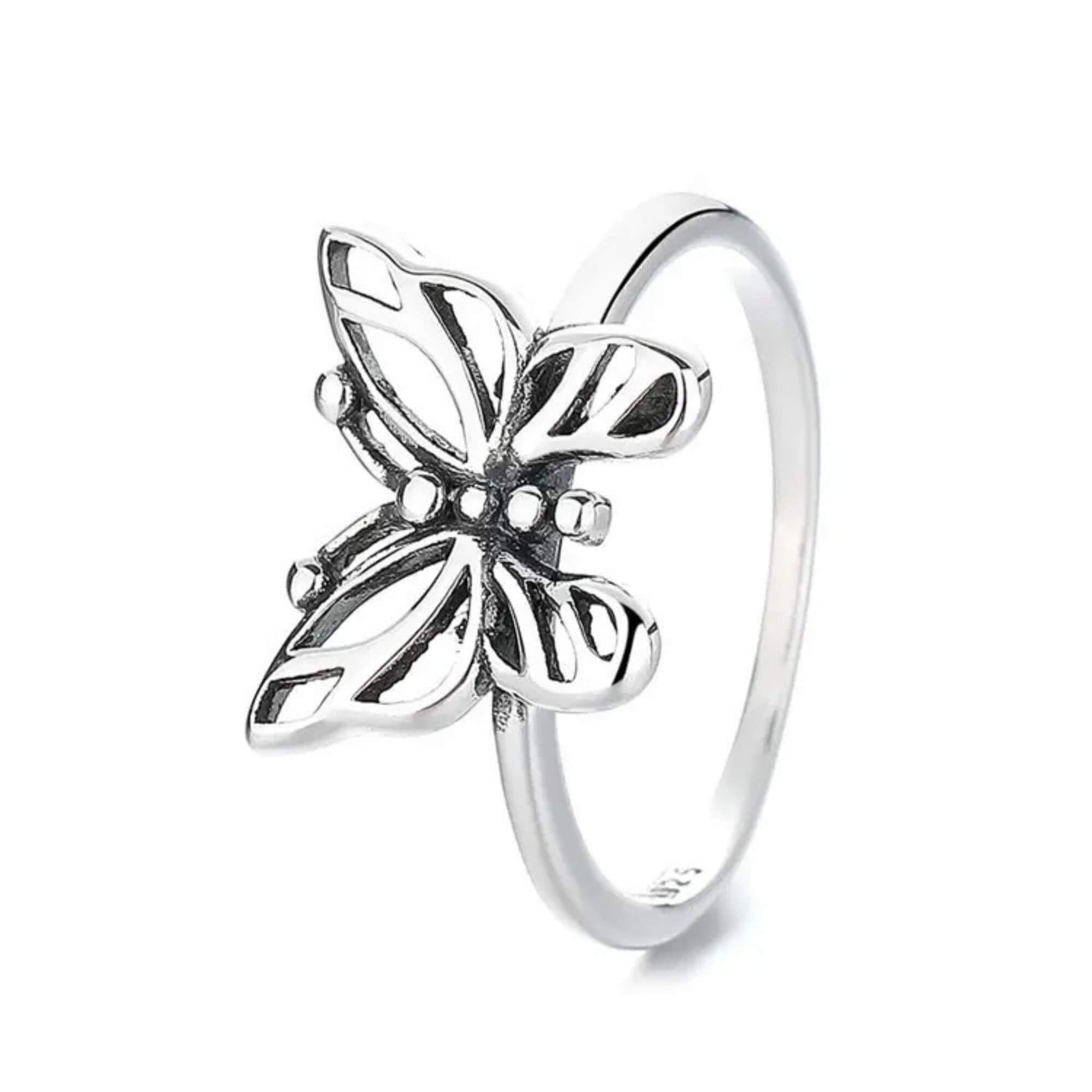 A silver ring with delicate butterfly, symbolizing transformation and new beginnings. The fine detailing on the wings adds character, resulting in both a meaningful and versatile piece for any occasion.