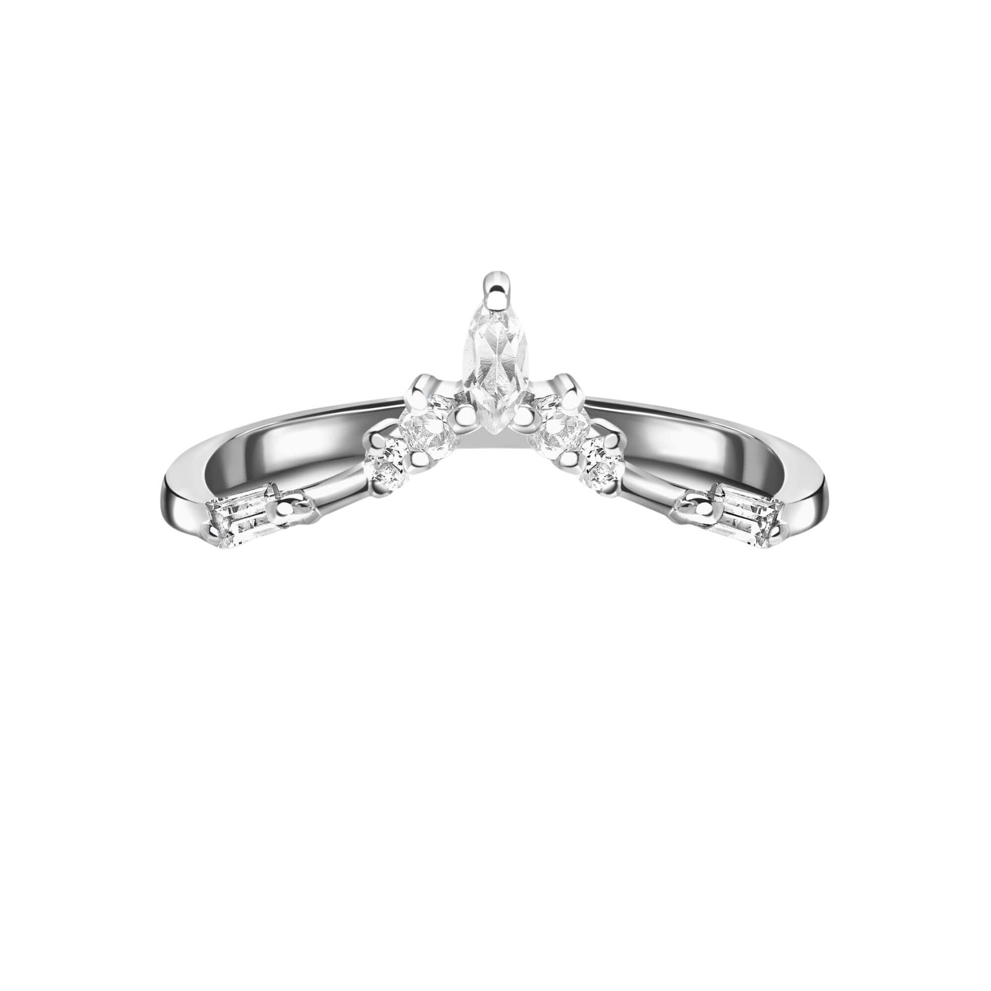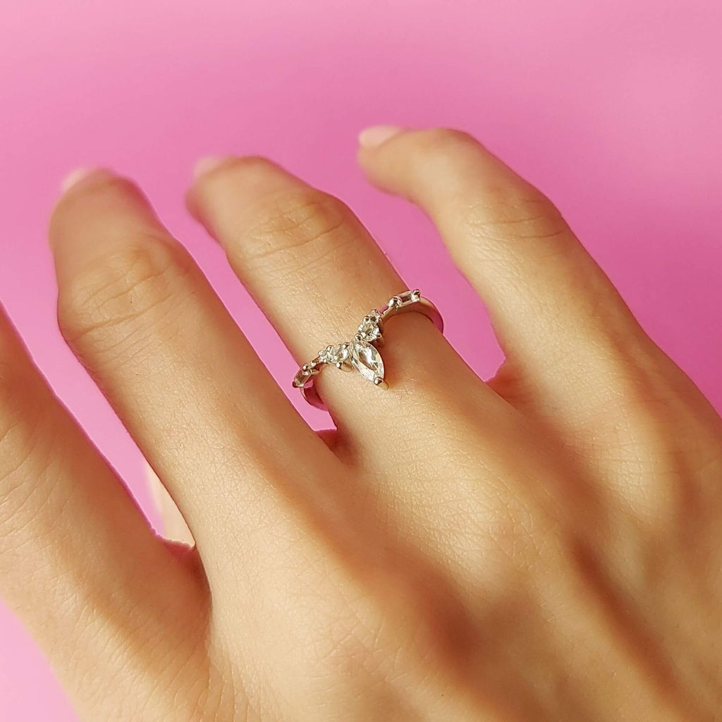 Sterling silver ring featuring natural white topaz stones arranged in a clean, minimal setting. The straightforward design makes it a versatile piece that works well with both relaxed and dressed-up styles.