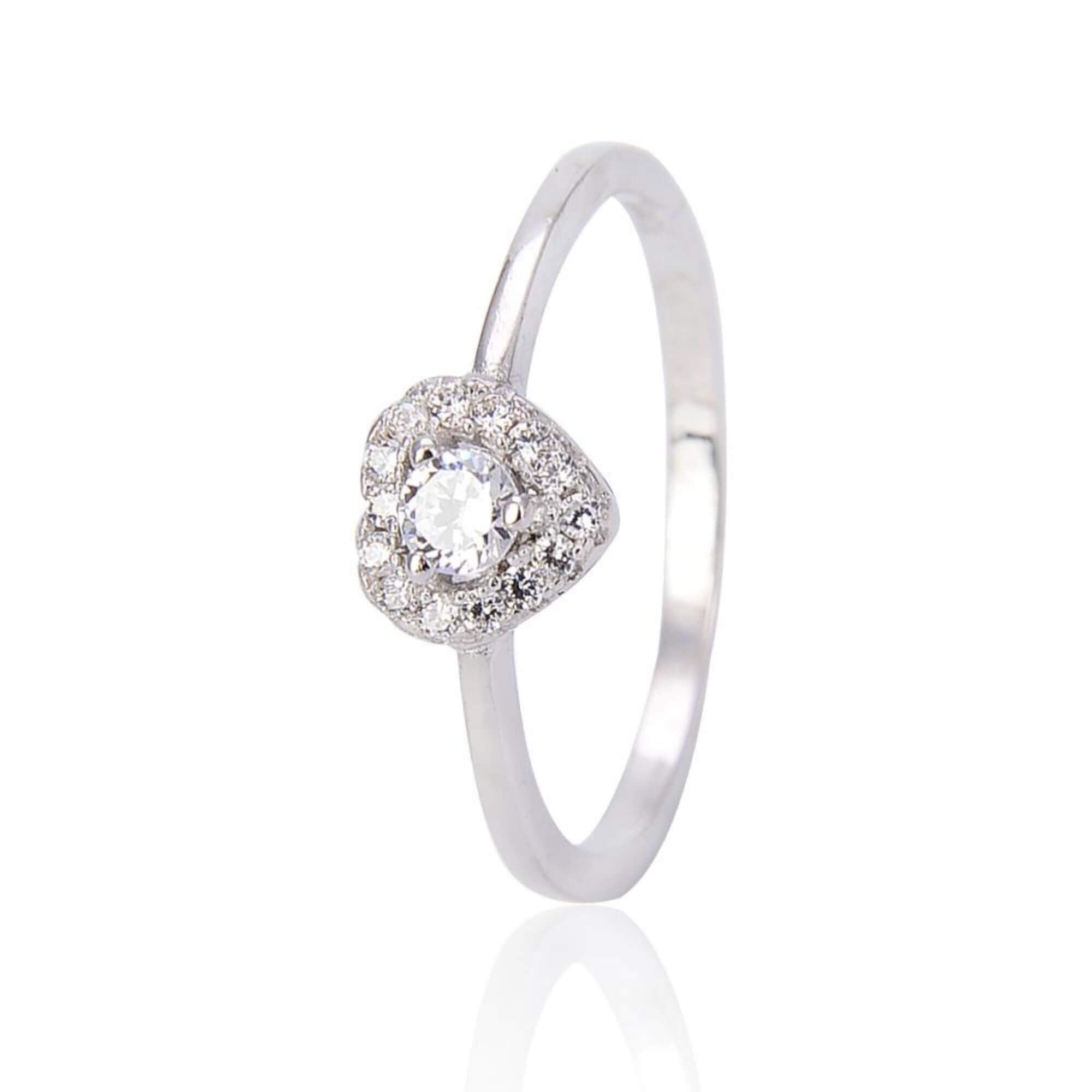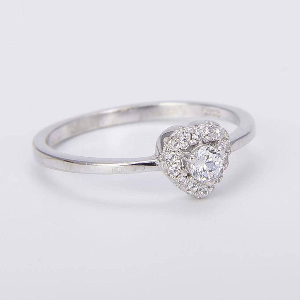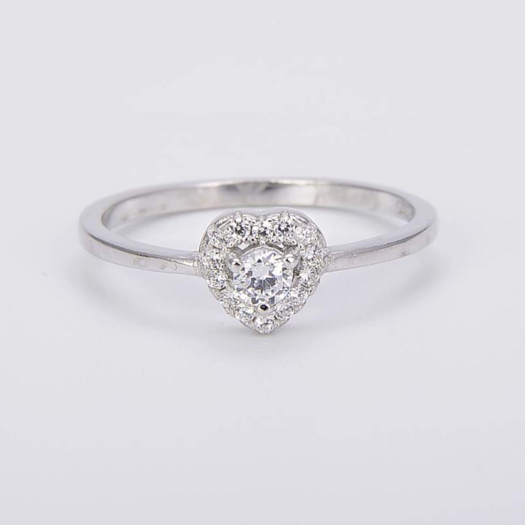 Sterling silver ring with a small heart-shaped setting, centered with a round cubic zirconia and framed by a fine row of smaller stones.The design feels bright and cheerful, making it a beautiful way to celebrate love or mark a special moment.