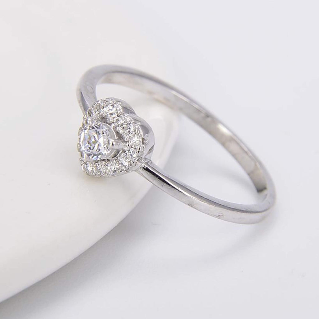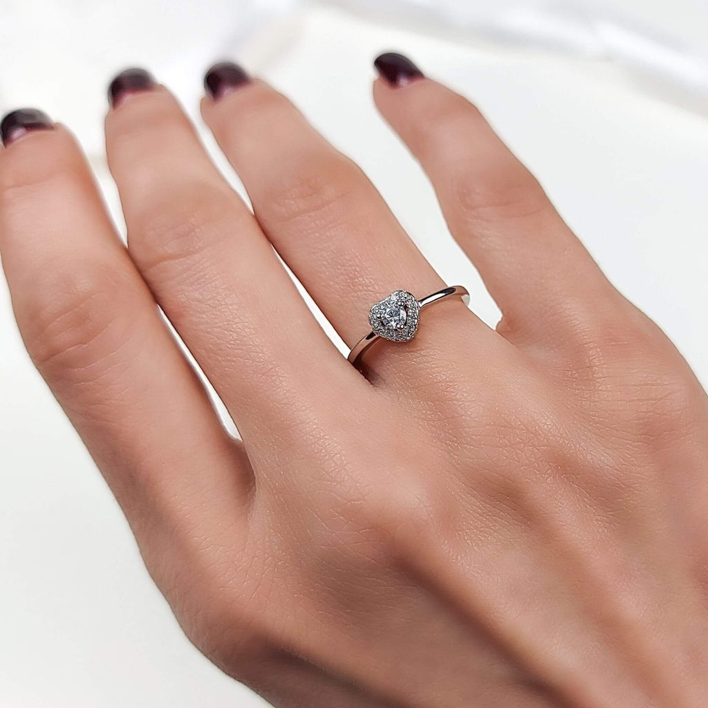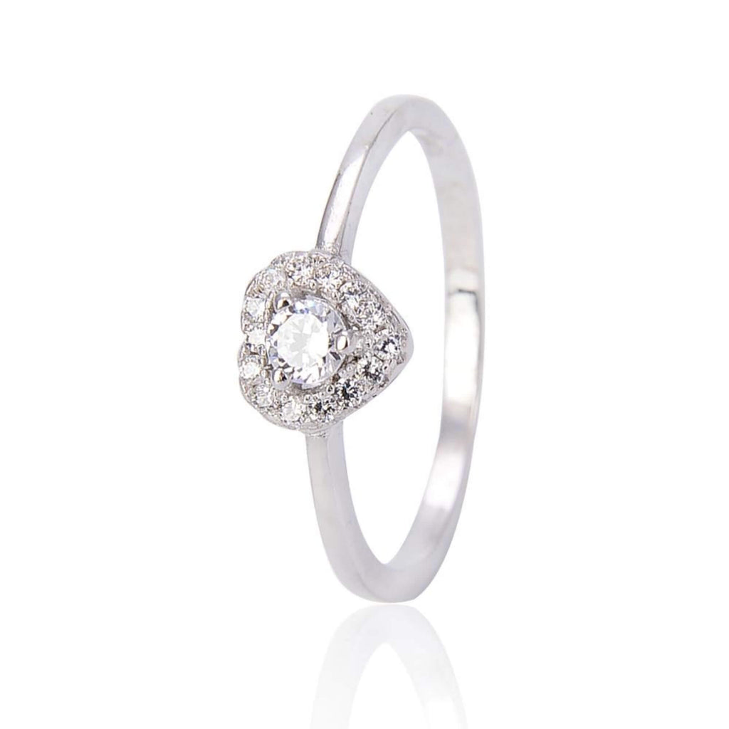 Sterling silver ring with a small heart-shaped setting, centered with a round cubic zirconia and framed by a fine row of smaller stones.The design feels bright and cheerful, making it a beautiful way to celebrate love or mark a special moment.