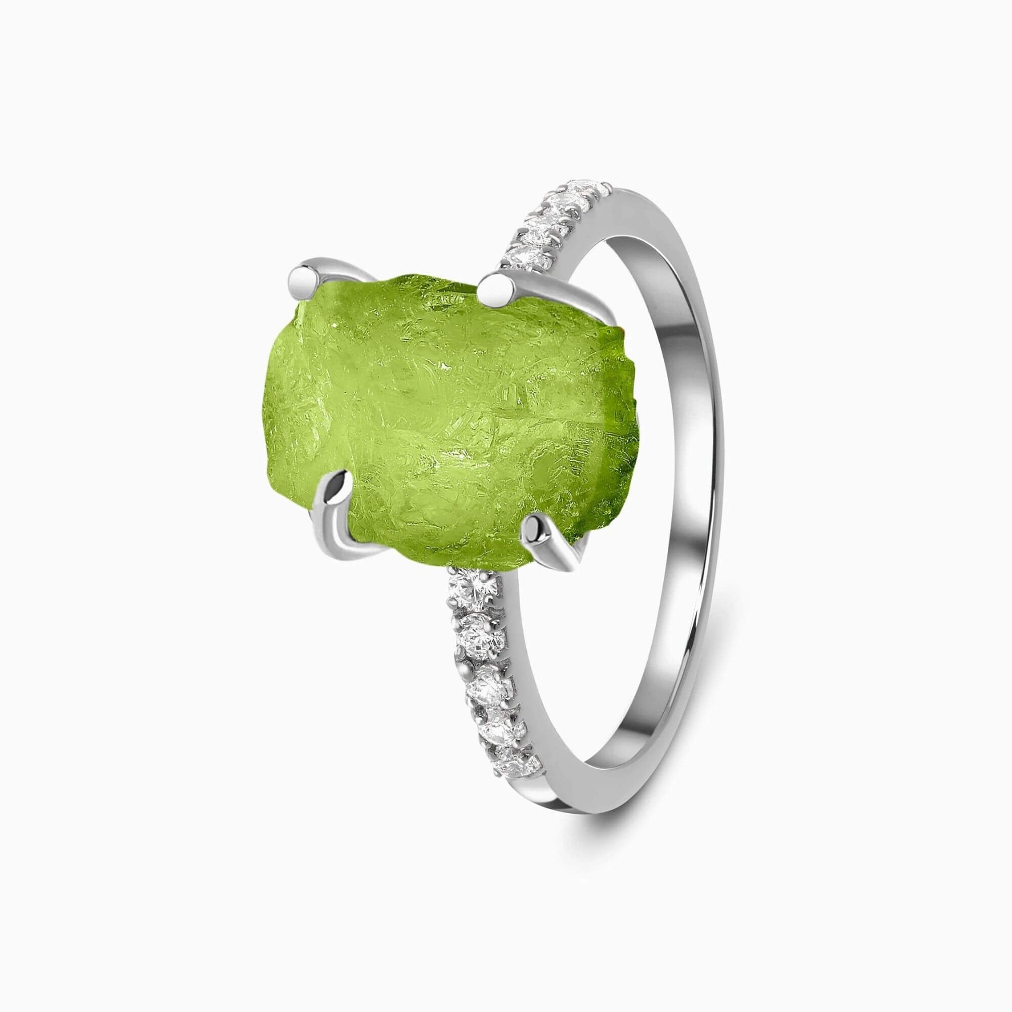 Sterling silver ring featuring a natural peridot in a rich olive-green tone with golden undertones. One of the oldest known gemstones, peridot forms deep within the Earth and is carried to the surface by volcanic activity. As the birthstone for August, it offers a meaningful and colorful accent that stands out without trying too hard.