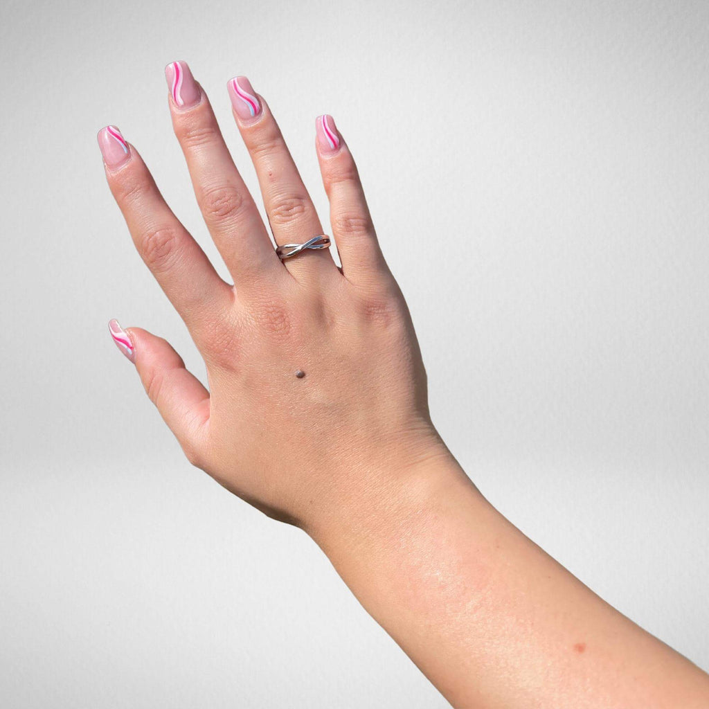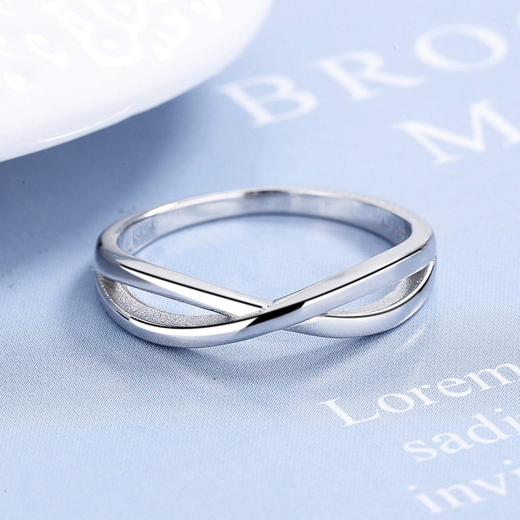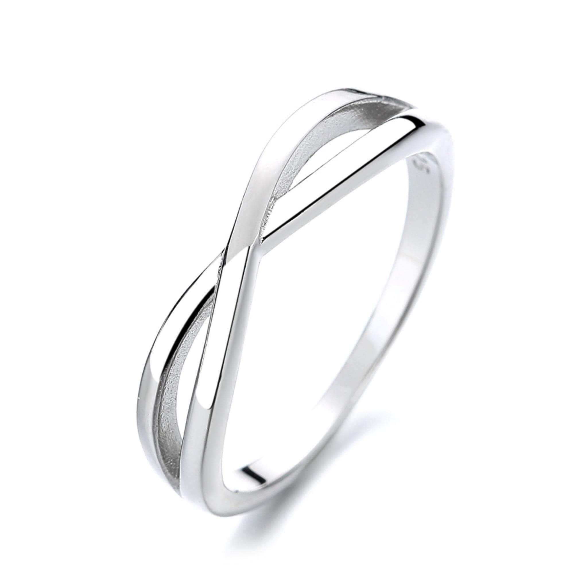 Sterling silver ring with a soft crossover form that wraps gently around the finger. A minimal design that works well on its own or layered with other rings.