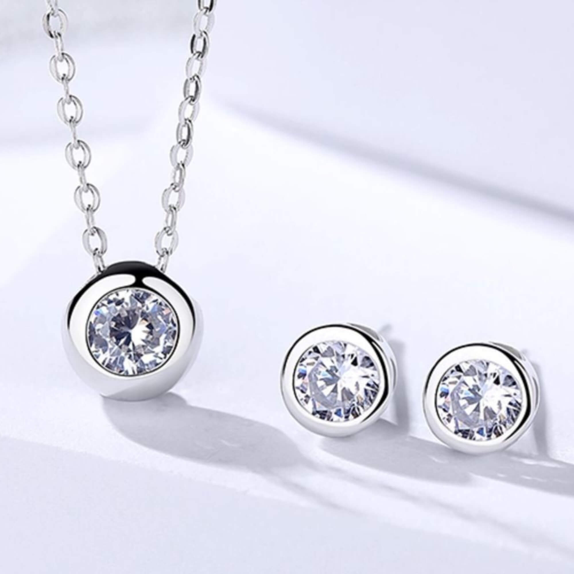Dimensions: Necklace - Length 42 cm + 5 cm, Pendant - 0.8 cm * 0.8 cm | Earrings - 0.65 cm * 0.65 cm
